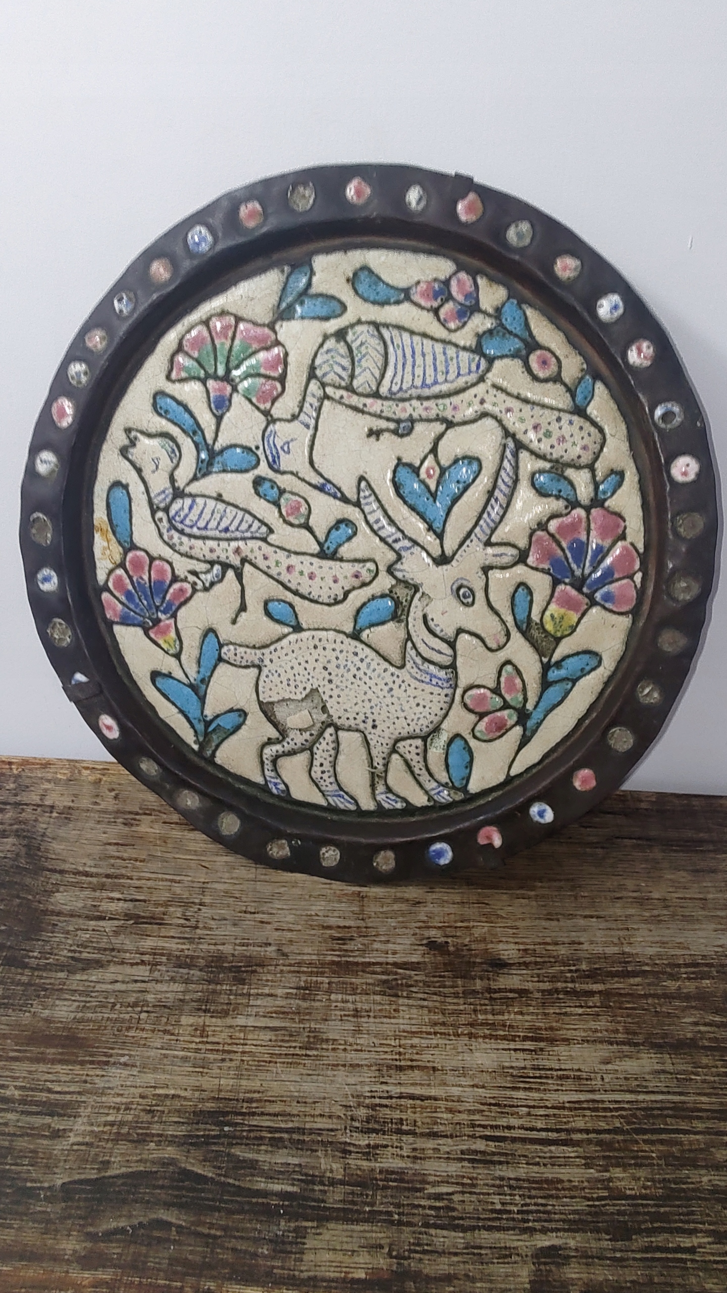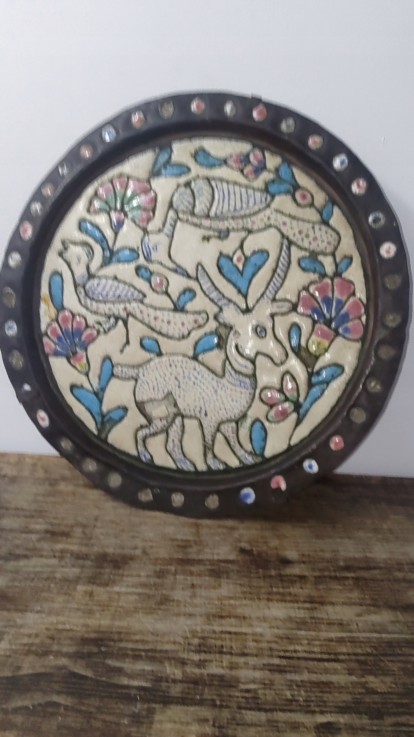 Велика, емальована, мідна підвісна тарілка 20-го століття