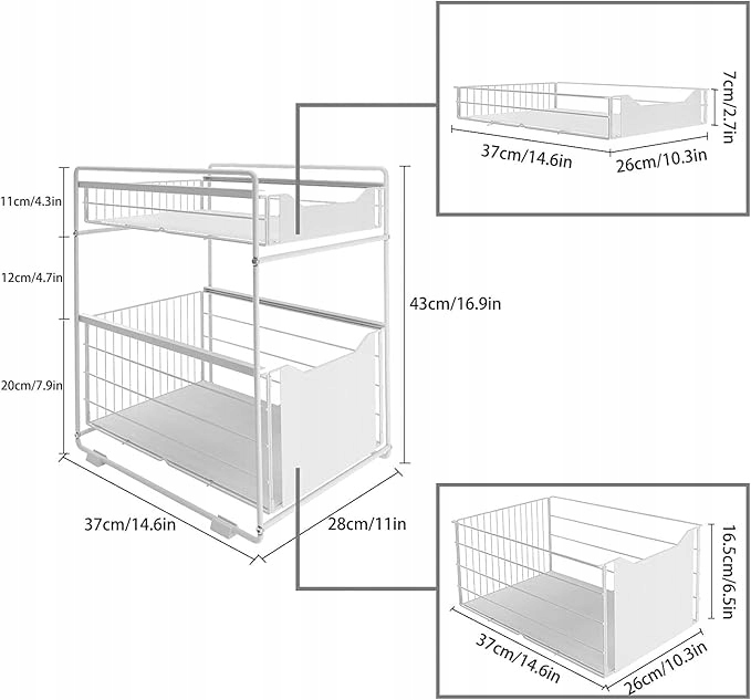 - Великий розмір: 43 x 37 x 28 см / 16,9 x 14,6 x 11 дюймів; максимальне навантаження: 5 кг. Велика місткість для зберігання всього в одній полиці, ефективно використовуйте кожен дюйм простору.