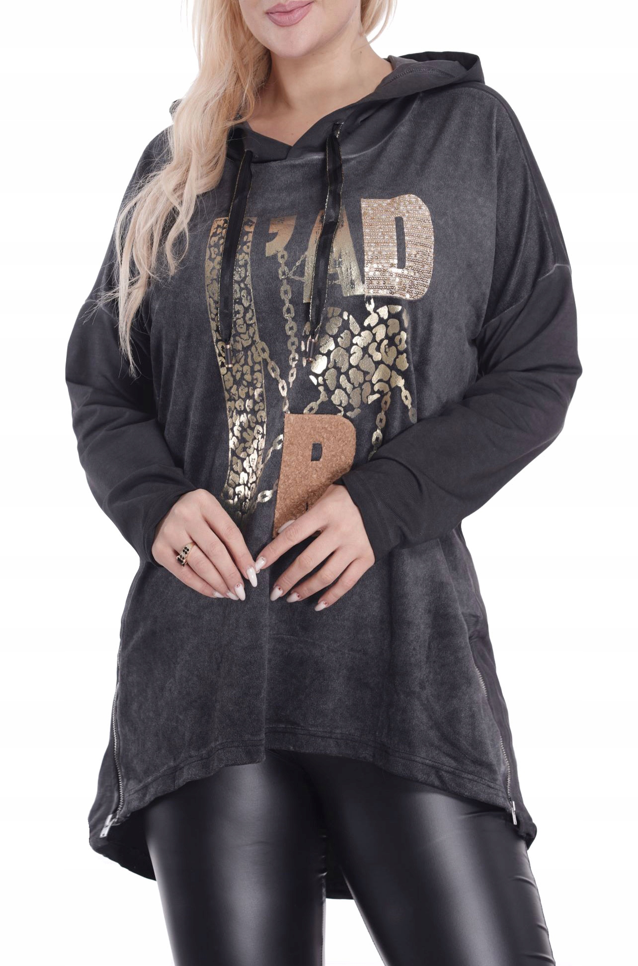ЦЯ СТИЛЬНА ТУНІКА-СВІТШОТ надзвичайно ЗРУЧНА В НОШЕННІ і водночас ДУЖЕ ЖІНОЧНА, а завдяки красиві, оригінальні вставки та зручні блискавки - а-ля бічні розрізи, ідеально сидять навіть на великих стегнах!