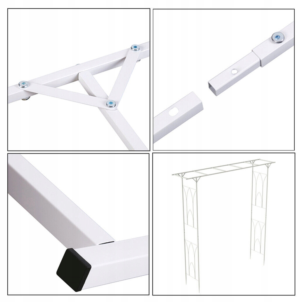 Суцільна металева арка: підставка для альтанки у внутрішньому дворику виготовлена з міцної металевої залізної конструкції, стійкого до атмосферних впливів білого покриття для тривалого використання, яке нелегко піддається іржі. Знімна конструкція, щоб ви могли легко від'єднати підставку та переносити її на вулицю для весілля просто неба.