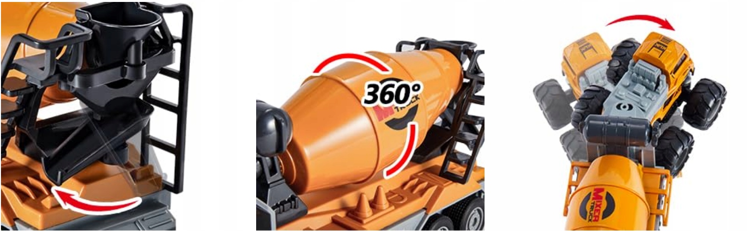 【Рухомі частини】 - Барабан бетономішалки обертається на 360 градусів. За допомогою ігор діти можуть дізнатися, як працюють бетонозмішувачі.