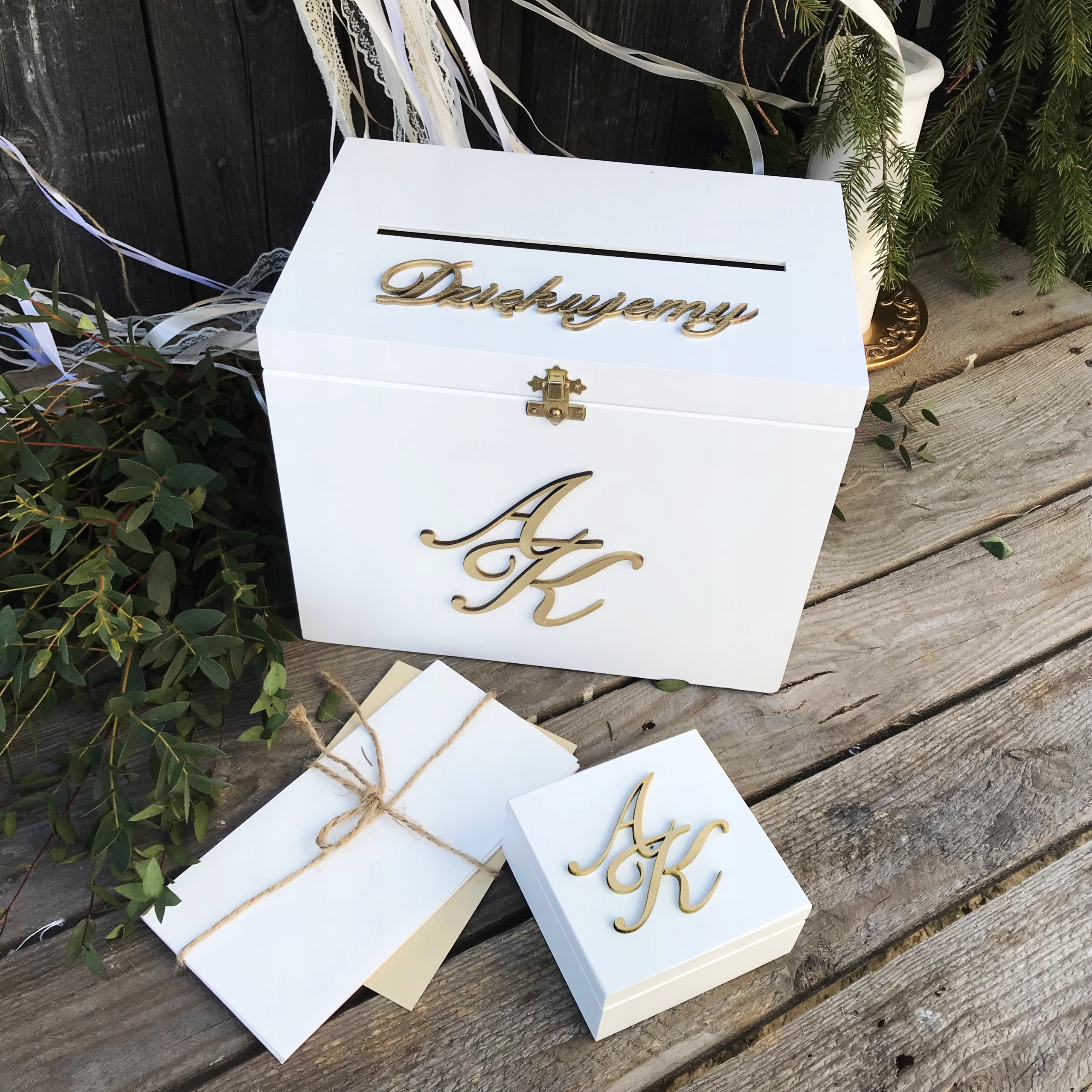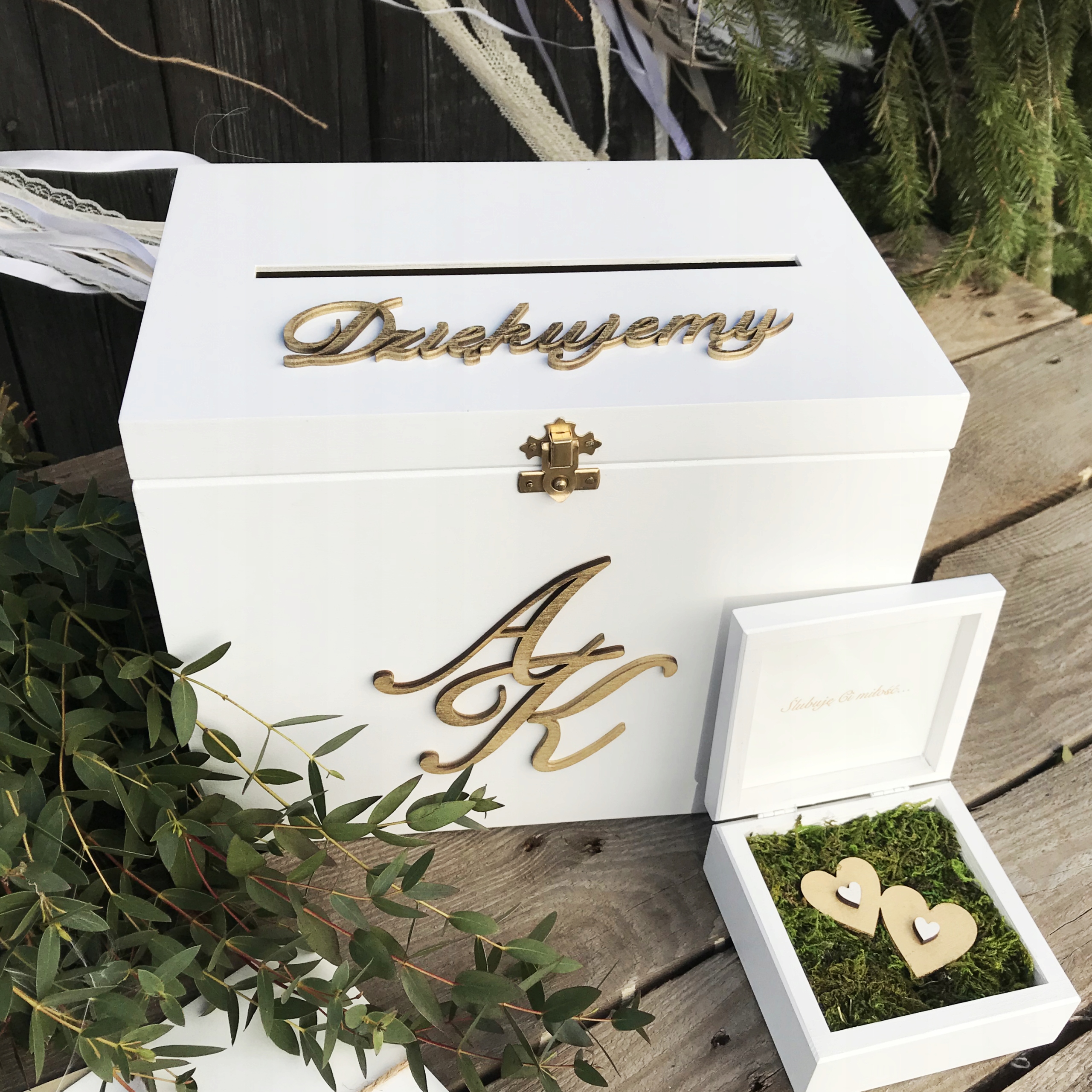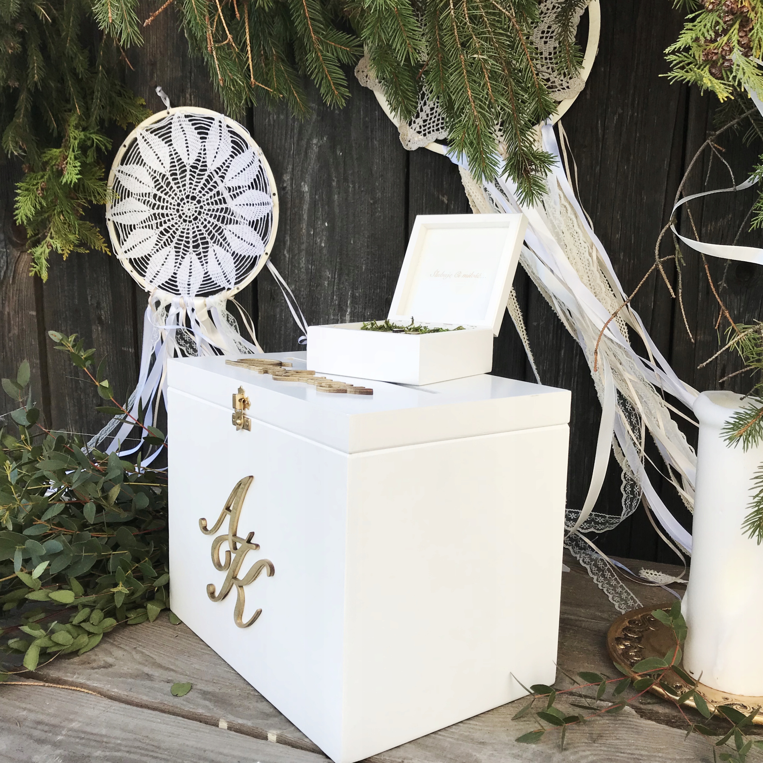 Велика БІЛА Шкатулка для КОНВЕРТІВ + ОБРУЧКИ, мох