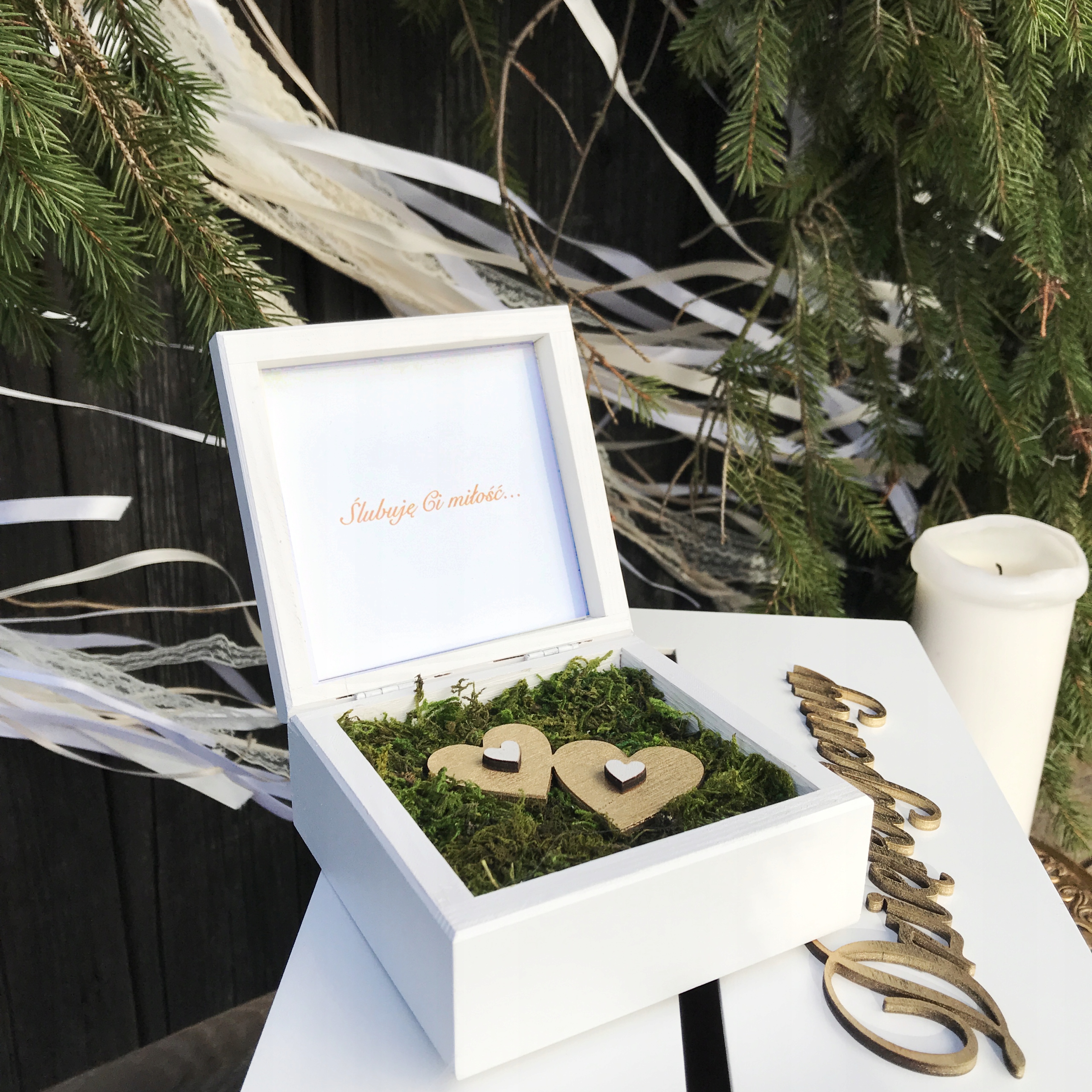 - скринька для весілля кільця наповнені мохом + золоті сердечка з сердечками (білі)< /li>