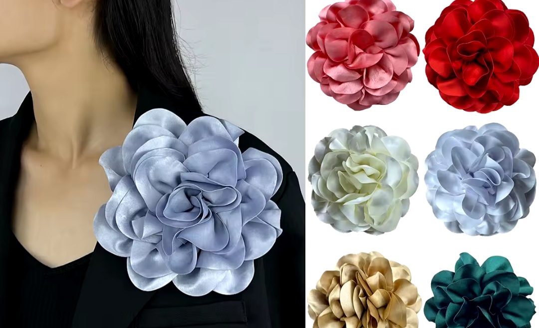 Велика брошка FLOWER BLACK SATIN ROSE FLOWER PIN 20см