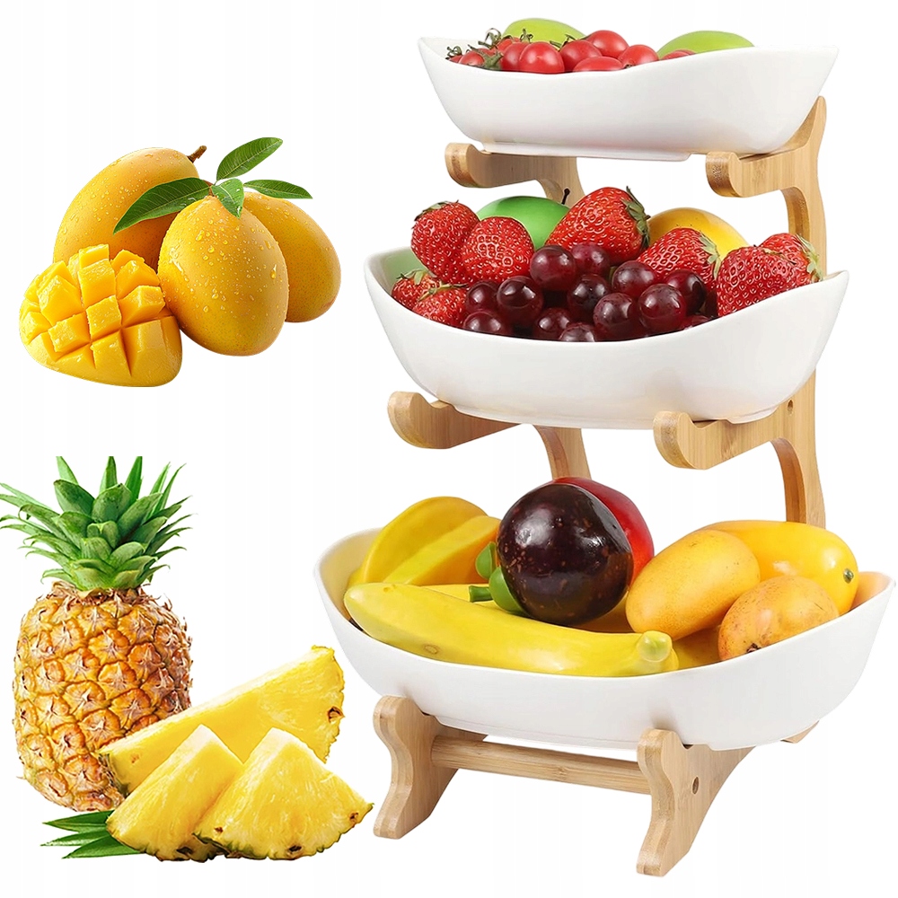 ВЕЛИКА МИСКА 3-ЯРІВНА ТАРІЛКА КОШИК ФРУКТІВ ОВОЧІ БАМБУКОВА ПІДСТАВКА ПІДНОС