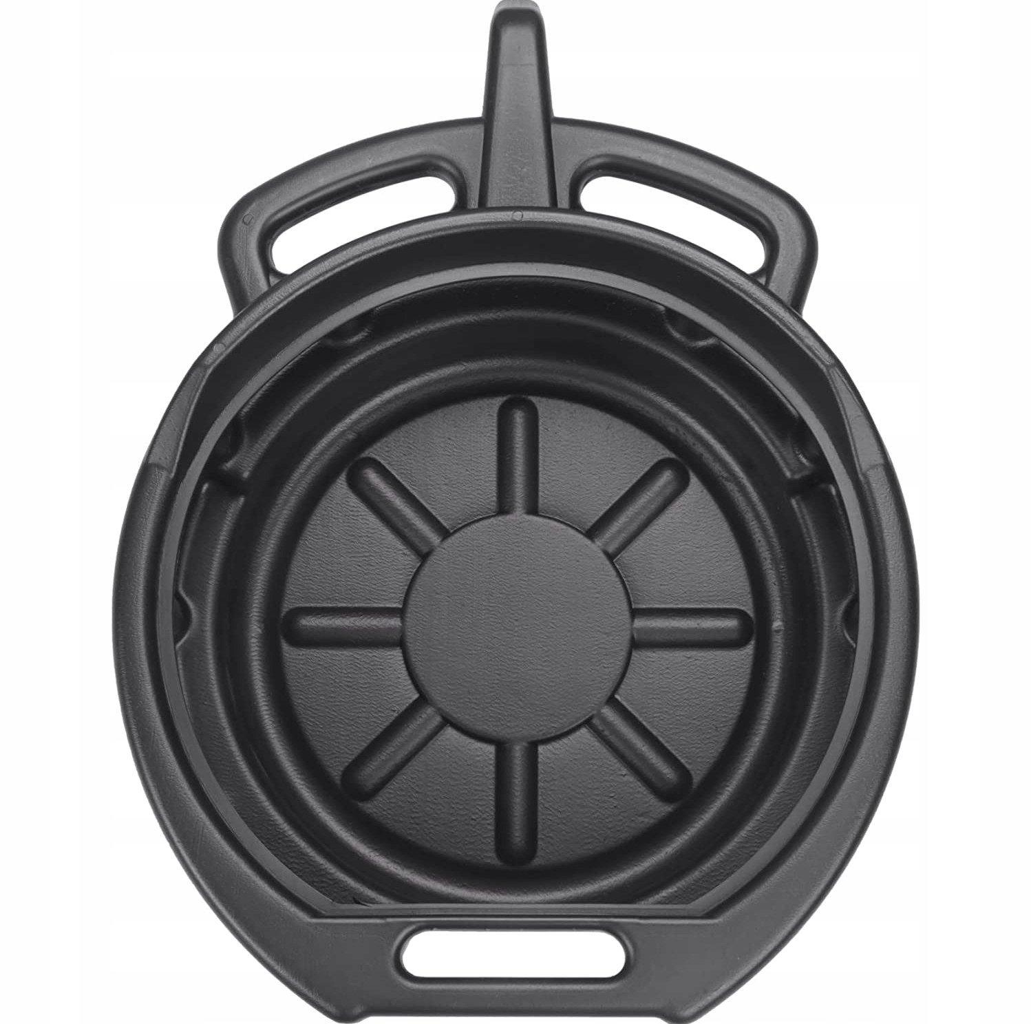 Корисно під час заміни масла чи охолоджувальної рідини в автомобілі. Невелика висота чаші дозволяє легко підсовувати її під автомобіль.