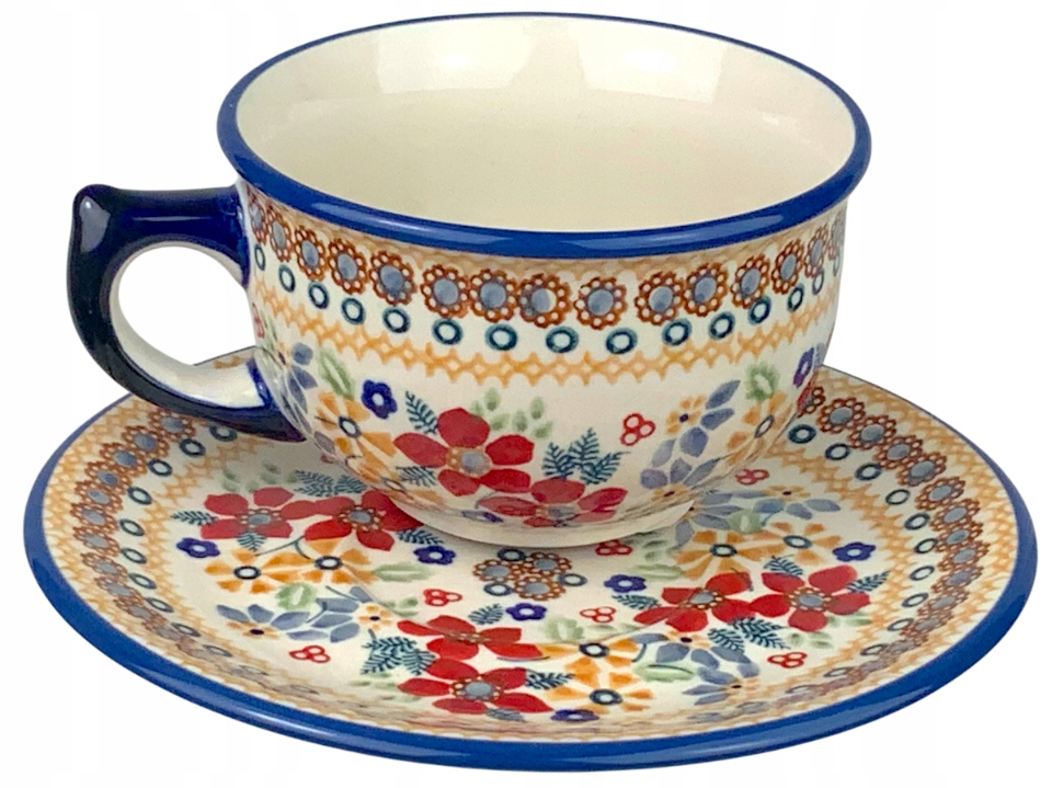 Велика чашка 300 мл з блюдцею унікальна DPLC кераміка Bolesławiec