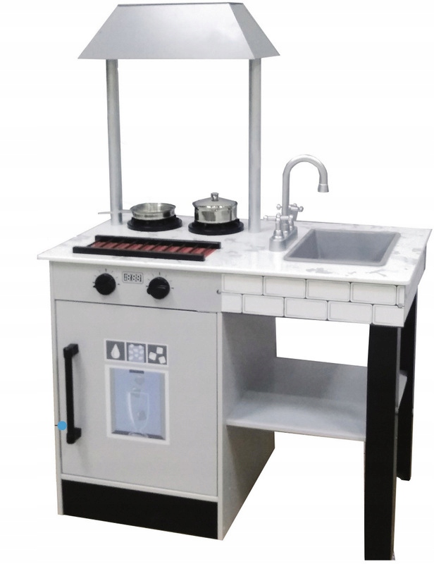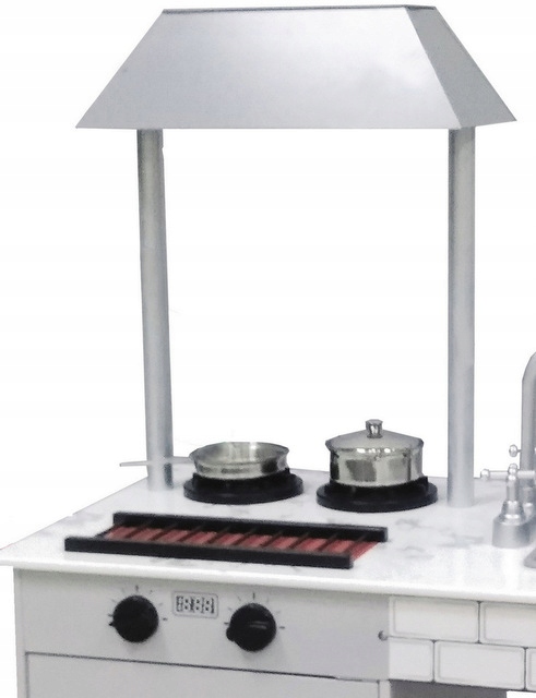 Все пофарбоване в білий колір. На кухні духовка, що відкривається, з внутрішньою решіткою та нижня шафа з полицею. На стільниці є дві конфорки, які після вставлення батарей видають звук і світяться. Також у нас є раковина зі змішувачем з рухомою головкою.