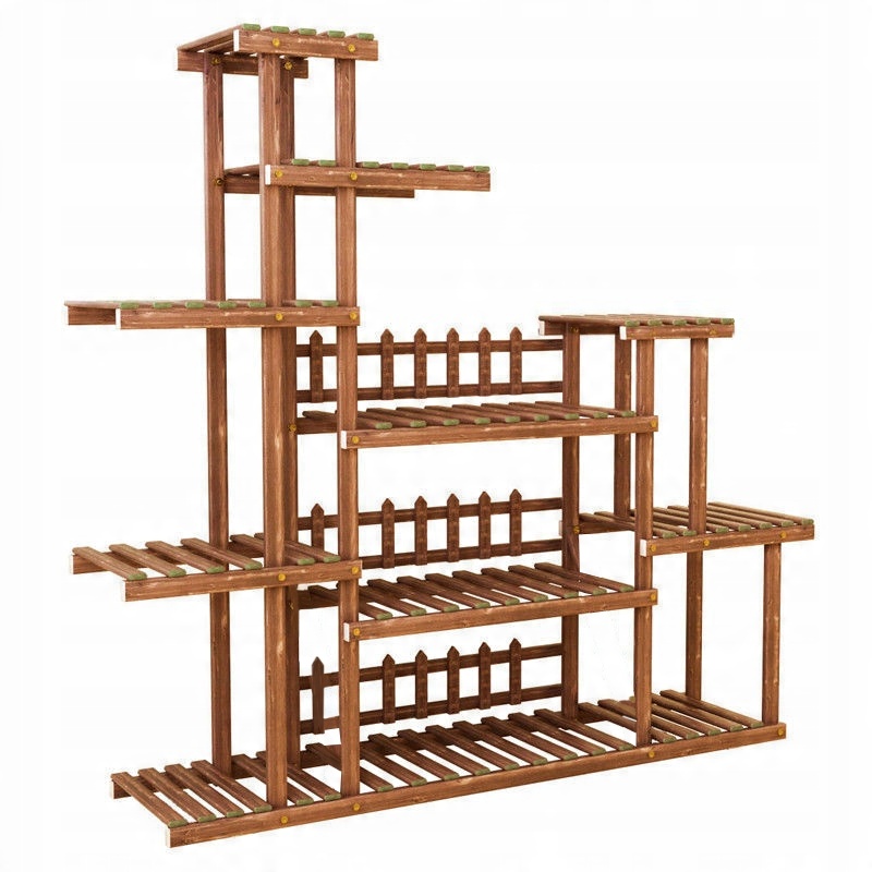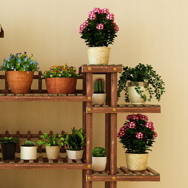 Виготовлена з високоякісної деревини підставка для квітів виглядає міцною та довговічною. Його сім горизонтальних рівнів полиць забезпечують багато місця для різноманітних квітів, трав і квіткових горщиків, дозволяючи розташувати рослини привабливим способом. Кожен рівень було ретельно сформовано, щоб створити привабливе та практичне місце для демонстрації вашої колекції квітів.