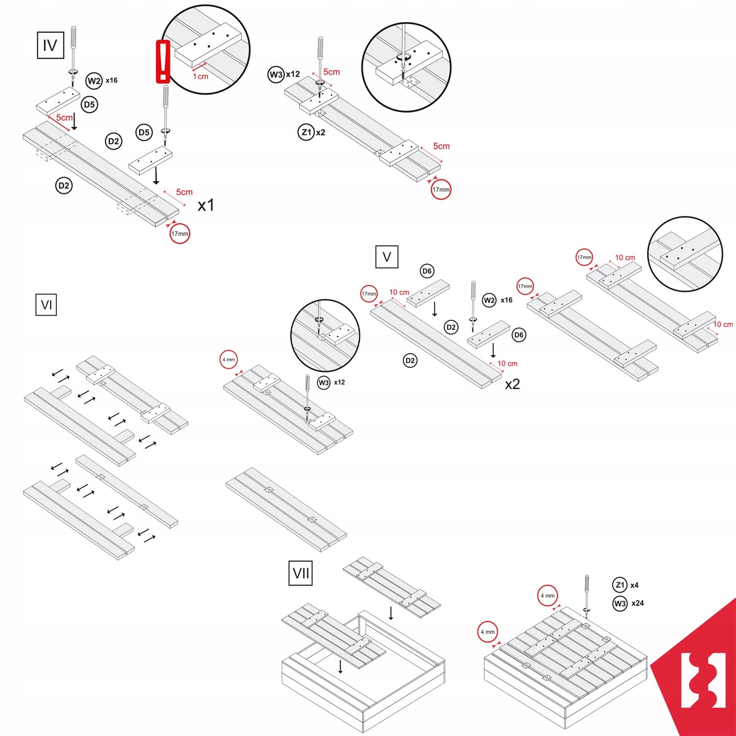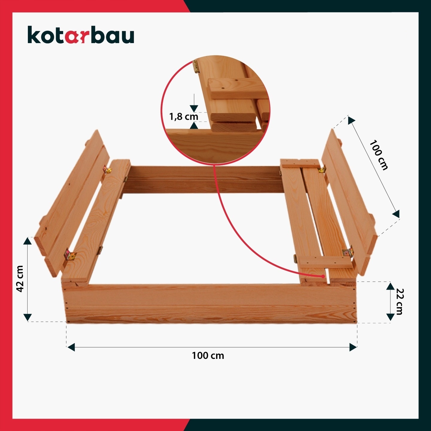 пісочниці оснащені двома складними лавками, які при складанні захищають пісок від забруднення , таких як листя, сміття або тварини. Крім того, вони просочені екологічною підготовкою, яка відповідає стандарту EN71-3, який гарантує найвищий рівень безпеки. Ізоляційний агротестил, прикріплений до набору , захищає пісок від змішування з землею, додатково запобігає рослинам, , що дозволить тривалий час зберігатися пісочницею. Торкаулін - ідеальний захист пісочниці від погодних умов. захищає від дощу, сонця та вітру, він також незамінний взимку.