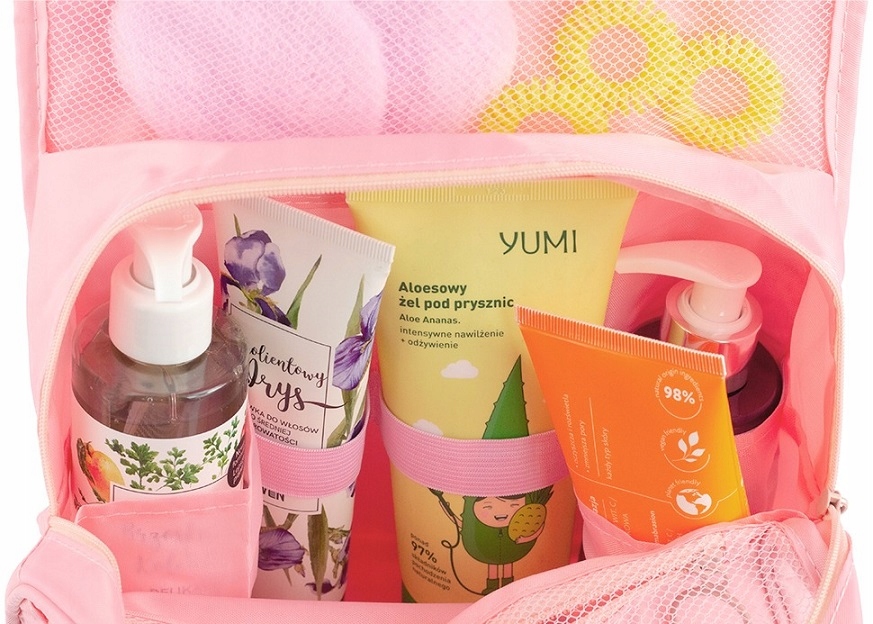 У косметичку поміщається вся необхідна косметика, шампунь, гребінець та інші необхідні в подорожі речі. Завдяки цьому вони будуть упорядковані та не будуть пошкоджені чи загублені.