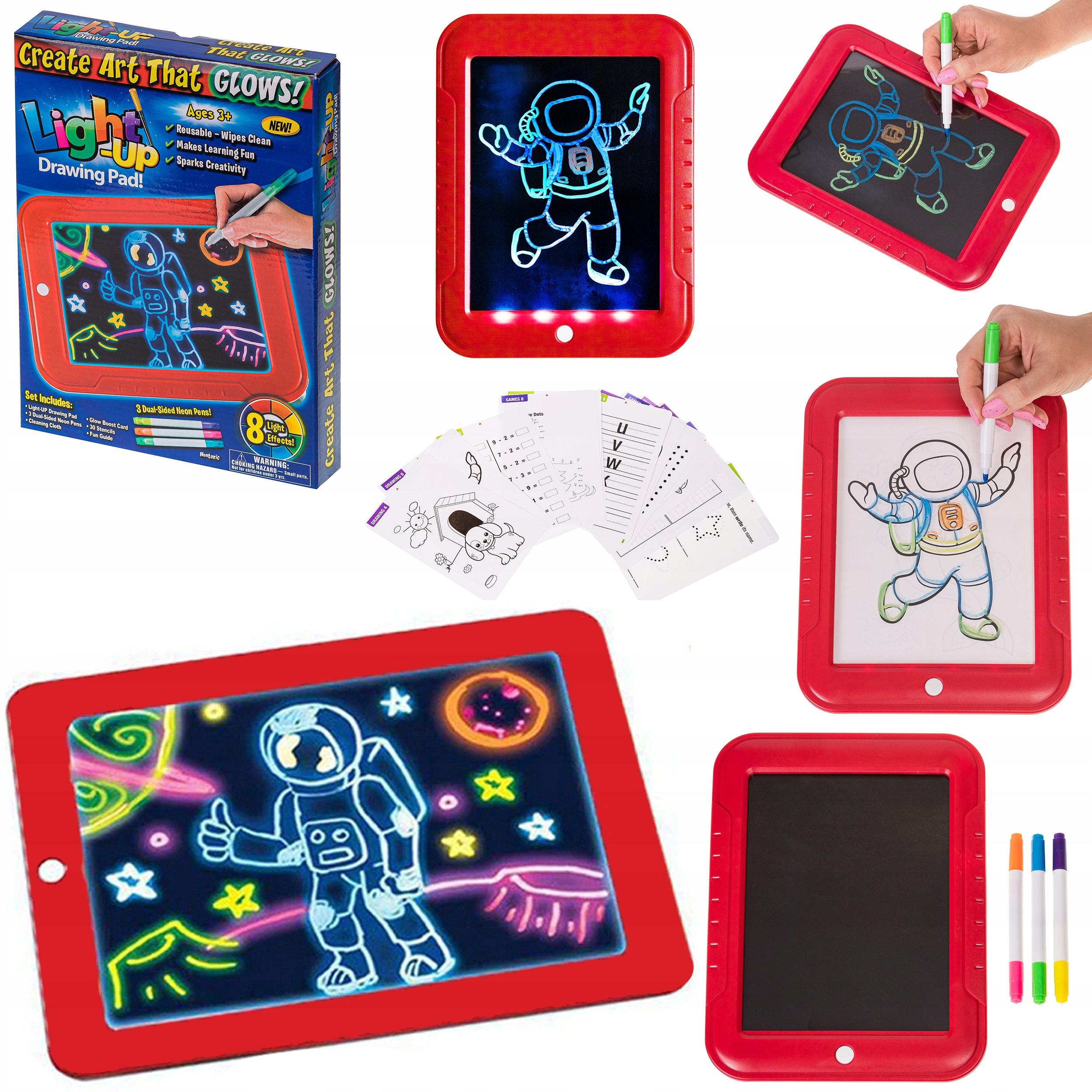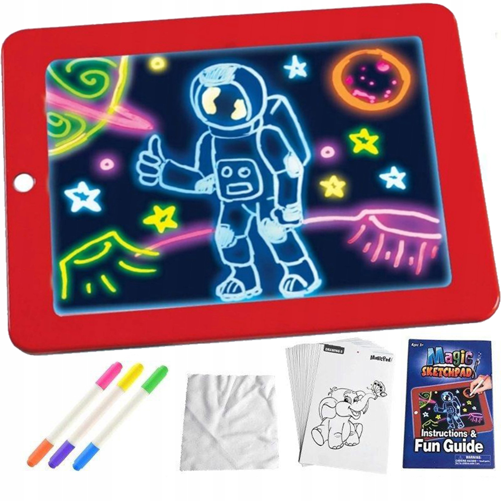 Дошка для малювання з підсвічуванням допоможе вашій дитині розвинути уяву, навчитися рахувати, писати та водночас весело провести час. Дитина може малювати кольорові неонові ескізи завдяки 3 спеціальним нетоксичним фломастерам.