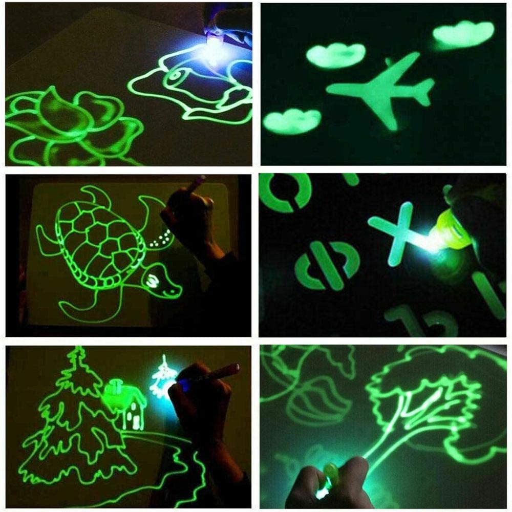 1. На першій сторінці можна малювати світлом. Найкраще малювати в темному або майже темному середовищі. Дошка для малювання покрита спеціальним фотолюмінесцентним покриттям, яке поглинає світло та створює ефект світіння в темряві.