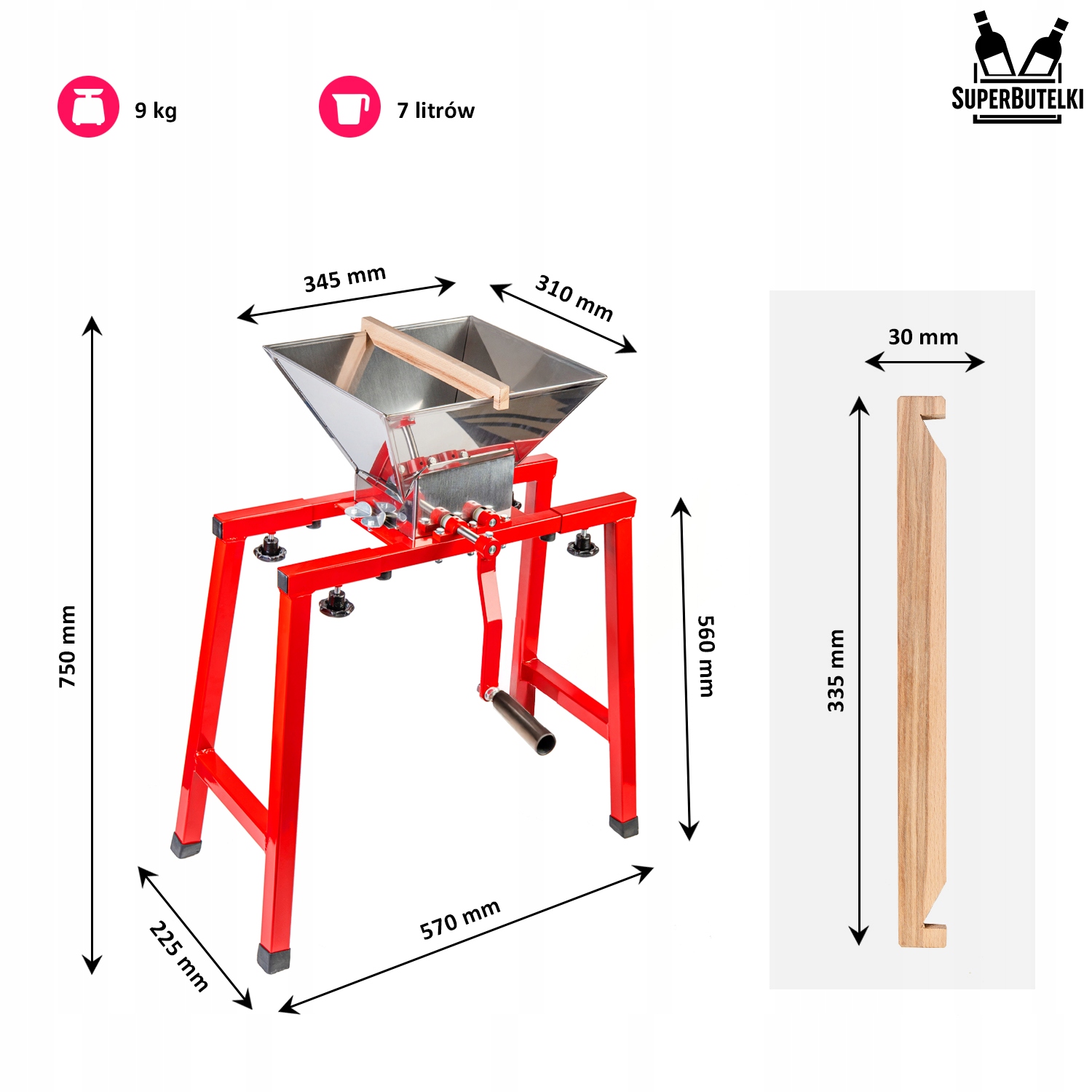 Оплачивая «Большая 7L дробилка, ручная версия для яблок Apple Stand», вы можете быть уверены, что данный товар из каталога «Соковыжималки и пресс-подборщики» будет доставлен из Польши и проверен на целостность. В цене товара, указанной на сайте, учтена доставка из Польши. Внимание!!! Товары для Евросоюза, согласно законодательству стран Евросоюза, могут отличаться упаковкой или наполнением.
