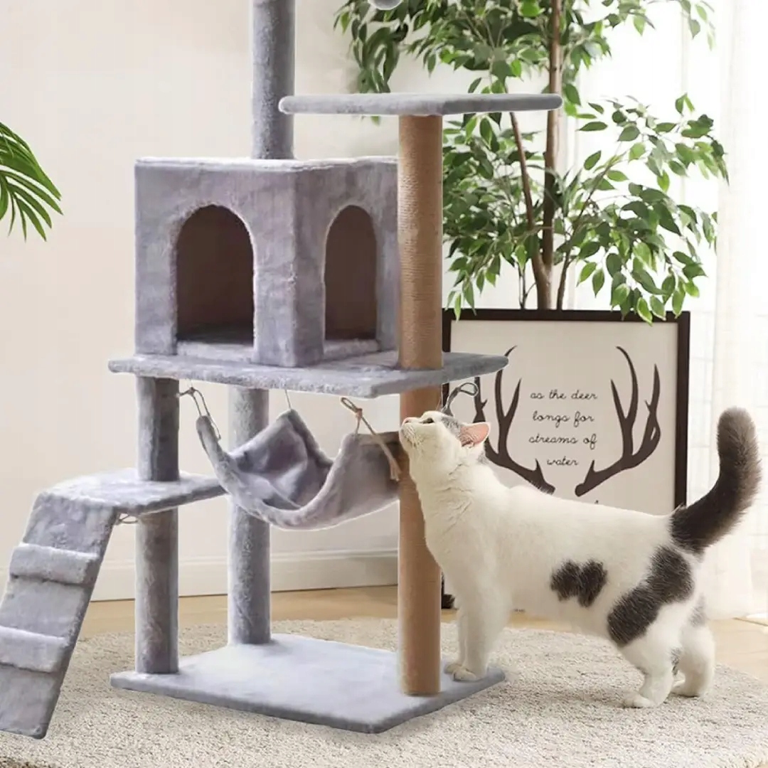 - Фізична стимуляція:підвішені іграшки та різні рівні для лазіння та стрибків надають коту фізична стимуляція. Це чудовий спосіб підтримувати вашу кішку активною і запобігти нудьзі.