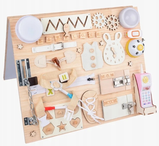 - маніпуляційна сенсорна дошка (дзвінок, телефон, лампа, замок, годинник та багато інших)