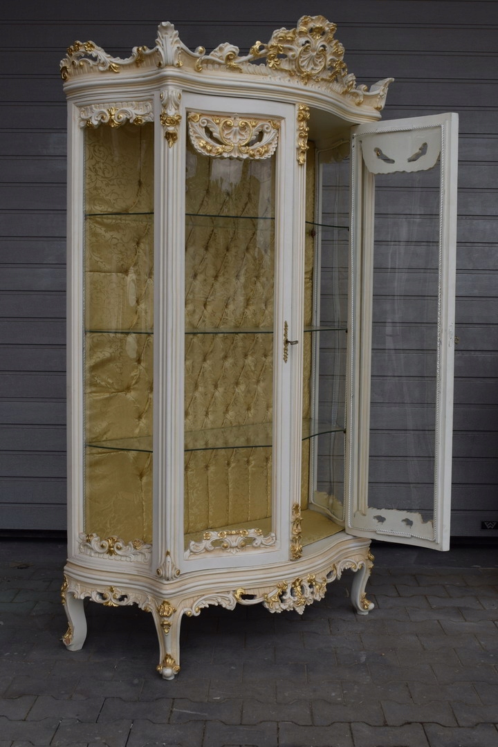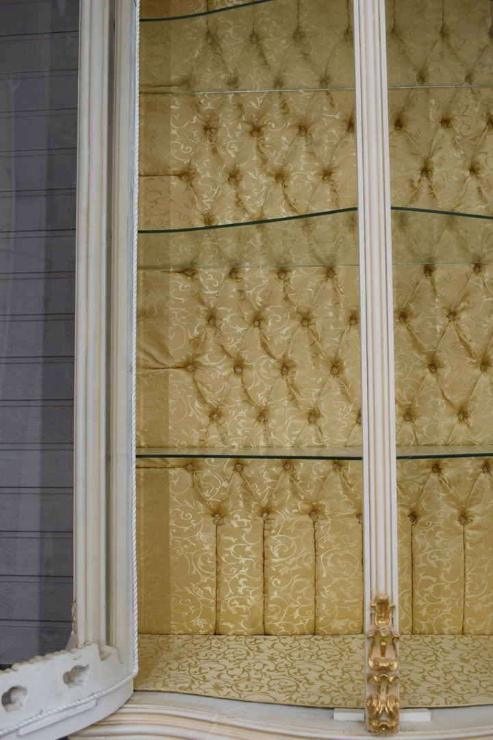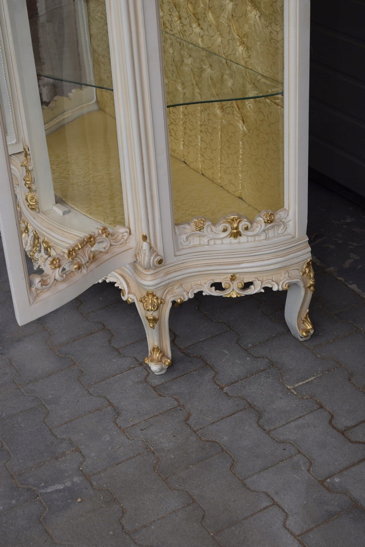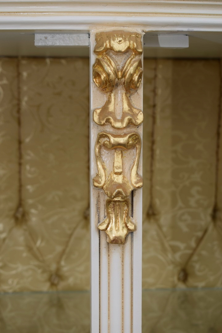 Велика французька вітрина, 100% дерево - велика різьблена вітрина кольору екрю