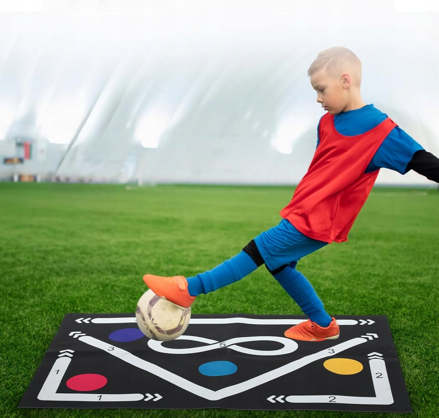 звільнити свій потенціал завдяки нашому тренувальному килимку футболу. Відмінний вибір для молодих любителів футболу, які хочуть практикувати та вдосконалювати свої навички, насолоджуючись грою. Поступово вдосконалюйте роботу та спритність на ногах та стають ще одним футбольним відчуттям.