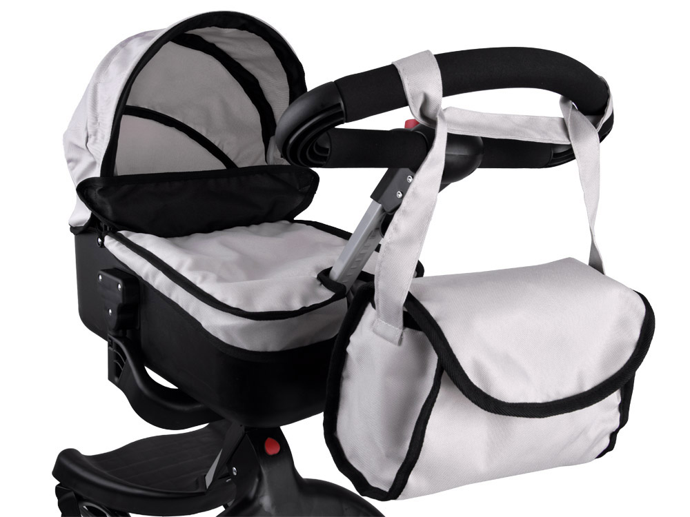 Сучасна коляска для ляльок-піввагона дозволить кожній дитині взяти на прогулянку свою улюблену ляльку - ведмедика. Простора гондола з сучасною конструкцією дуже легко пересувається завдяки великим поролоновим колесам, а ручка коляски легко регулюється під зріст дитини. У колясці є великий простір для розміщення ляльки на м'якому матрацику, капюшон коляски складається, а чохол знімається. Коляска також оснащена місткою сумкою для необхідних аксесуарів.