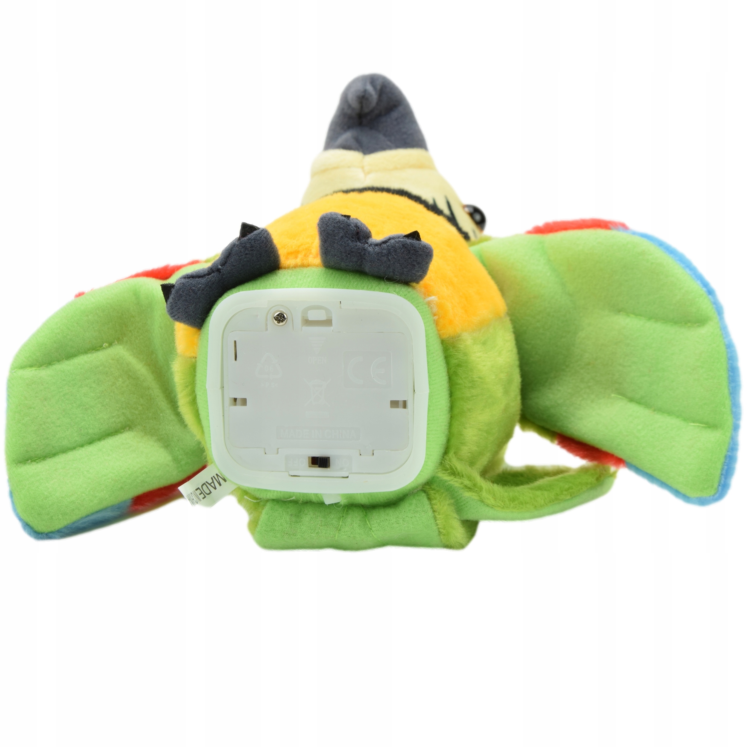 Цей чарівний папуг буде смішним, спотворюйте слова та звуки (включаючи спів) під час переміщення крил.