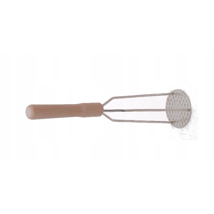 Картопледавка виконана з металу, а її ручка – з дерева. Він великий, але зручний. З його допомогою можна швидко і якісно розім'яти варену картоплю або, для різноманітності, приготувати смачне картопляне пюре. Він має щільно розташовані отвори для трамбування на поверхні розриву. Легко чиститься, не знебарвлюється. Ідеально підходить для будь-якої кухні. Матеріал, з якого він виготовлений - оцинкований метал, що забезпечує довговічність виробу. Ручка збивачки виготовлена з дерева.