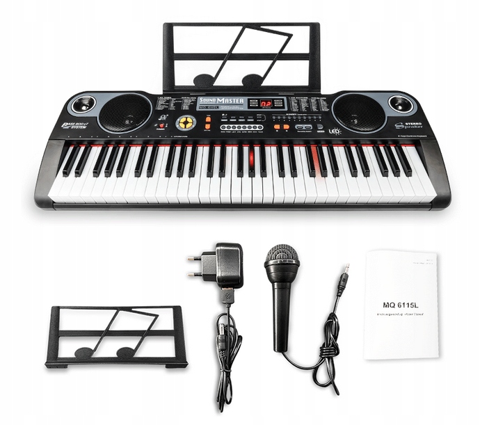 MQ 6115L це навчальна клавіатура з мікрофоном для дітей з 61 клавішею, яка в режимі уроку має підсвічування для кращої орієнтації клавіатури. Це інструмент, призначений для того, щоб навчитися грати та розважатися під музику щодня. Дуже великий набір звуків, ритмів і широкий спектр додаткових функцій роблять його інструментом, який допомагає розвивати музичні інтереси та дозволяє вам досліджувати багатий світ звуків.