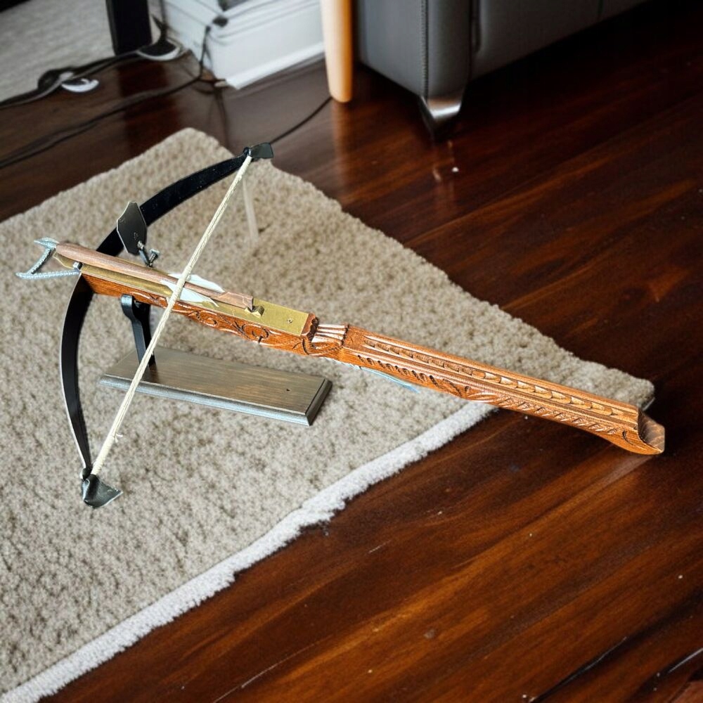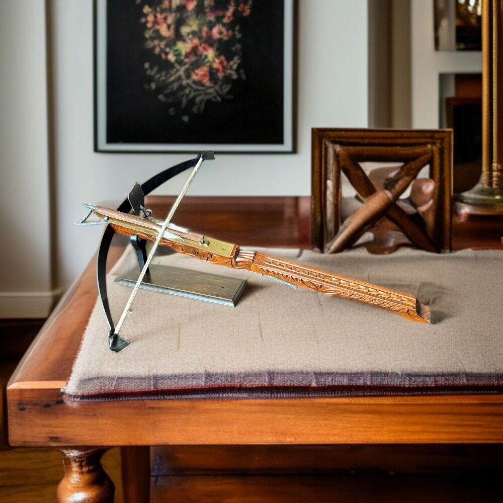 ❇️ ЧУДОВА РЕПЛІКА ХРОСТА ІЗ БОЛОМ - це надзвичайний предмет, який повертає нас у часи давніх дуелей і воєн. Виготовлений з високоякісних матеріалів, він ідеально відображає характер оригінальної зброї. Завдяки рухомим елементам, таким як струна, затвор і курок, ви можете відчути себе справжнім лицарем.
