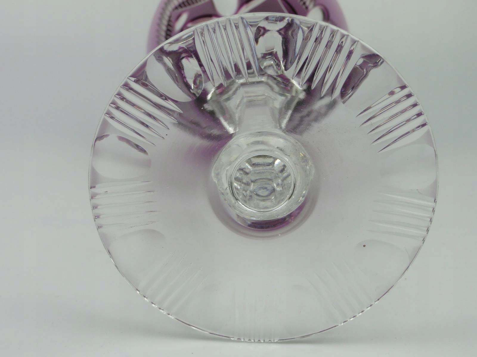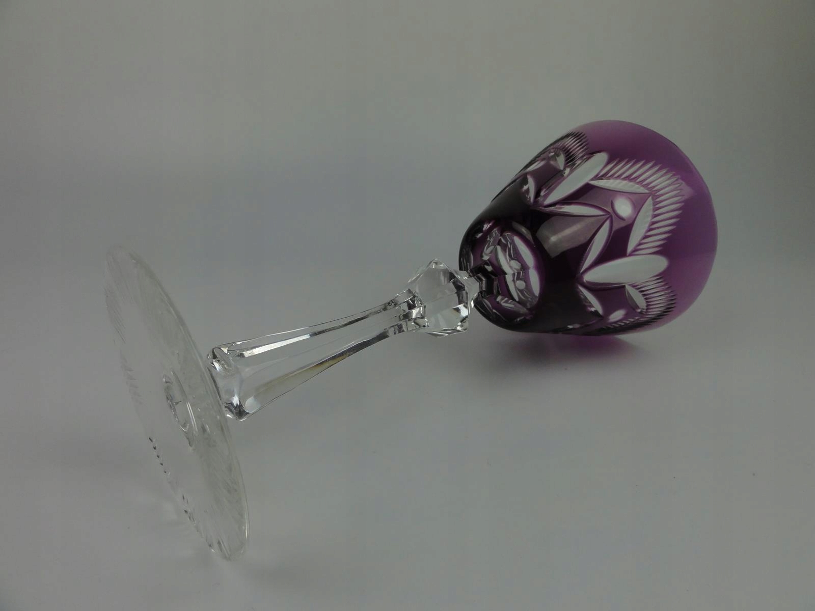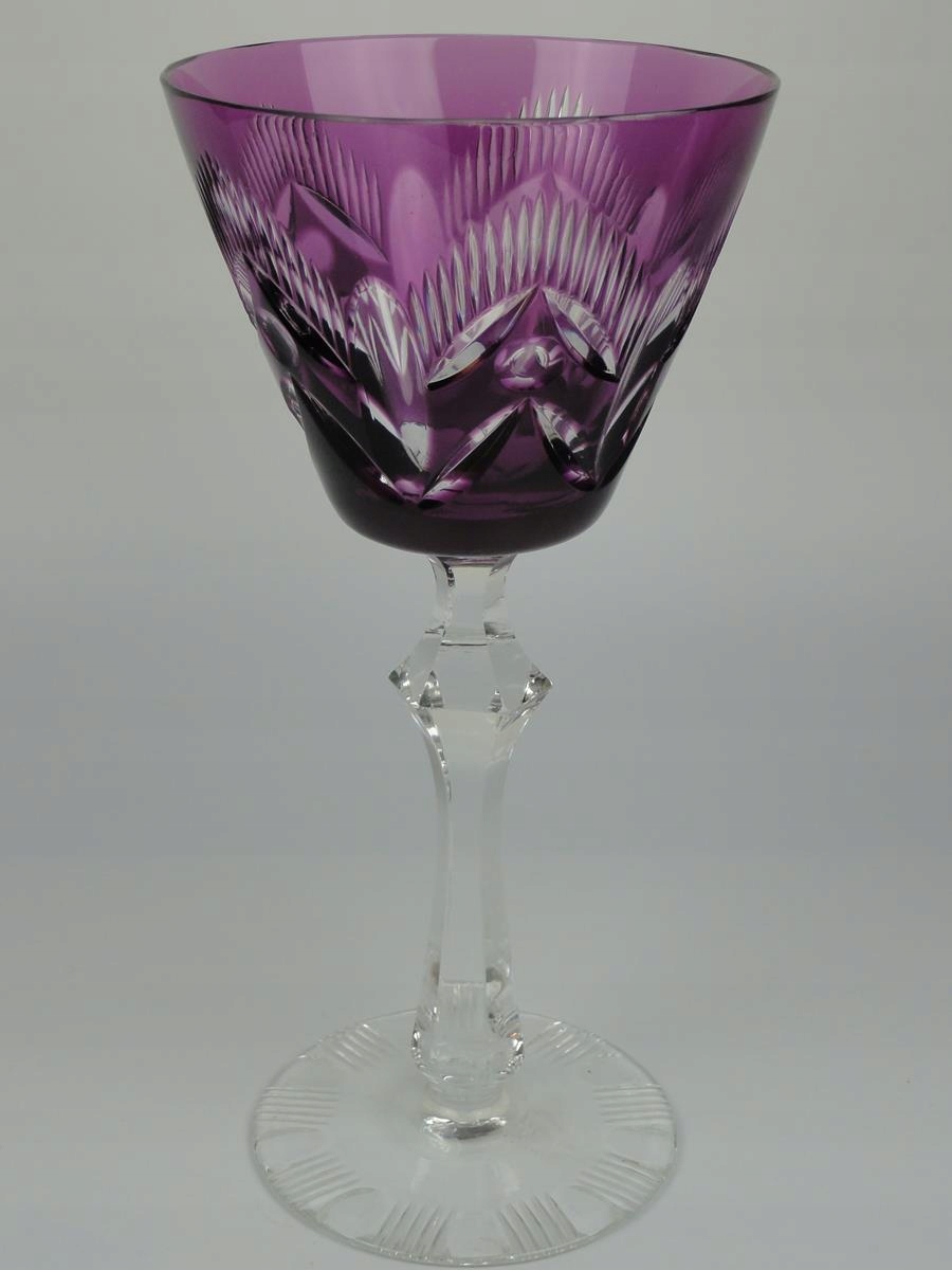 *келих зі свинцевого скла, видувний у формі, шліфована та полірована, фіолетове покриття, стовпчастий вал, шліфована основа,