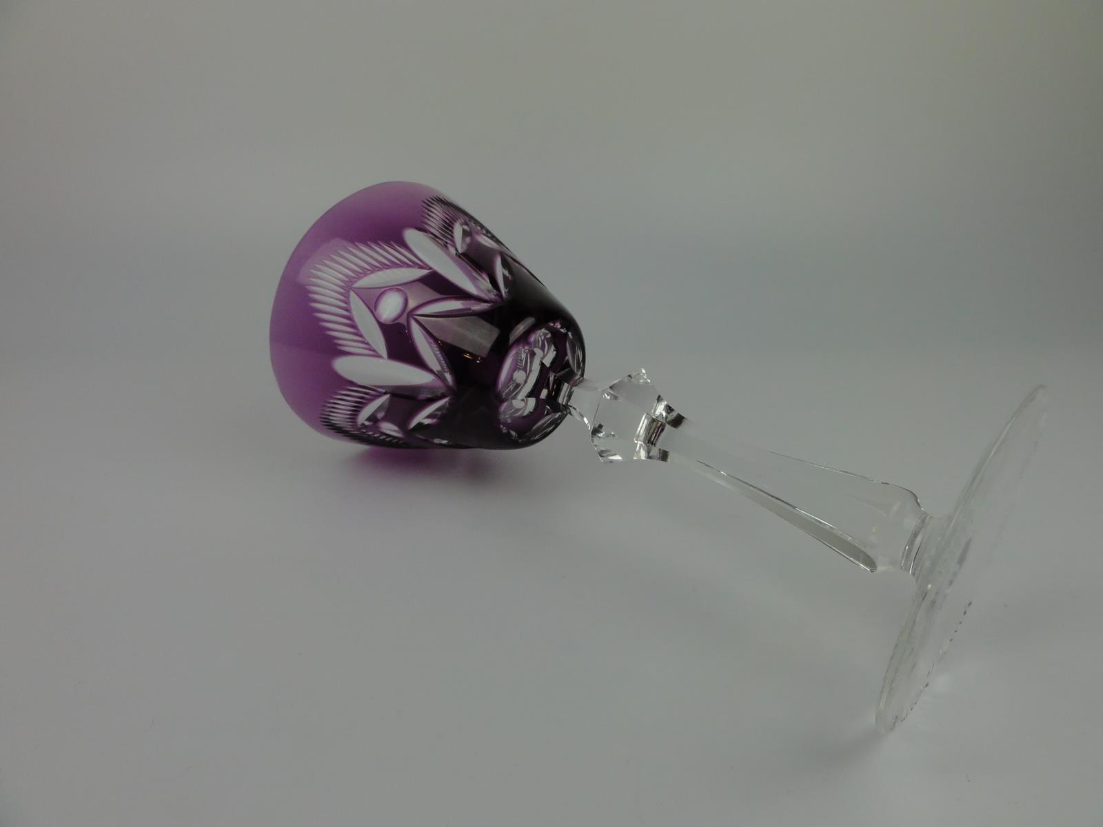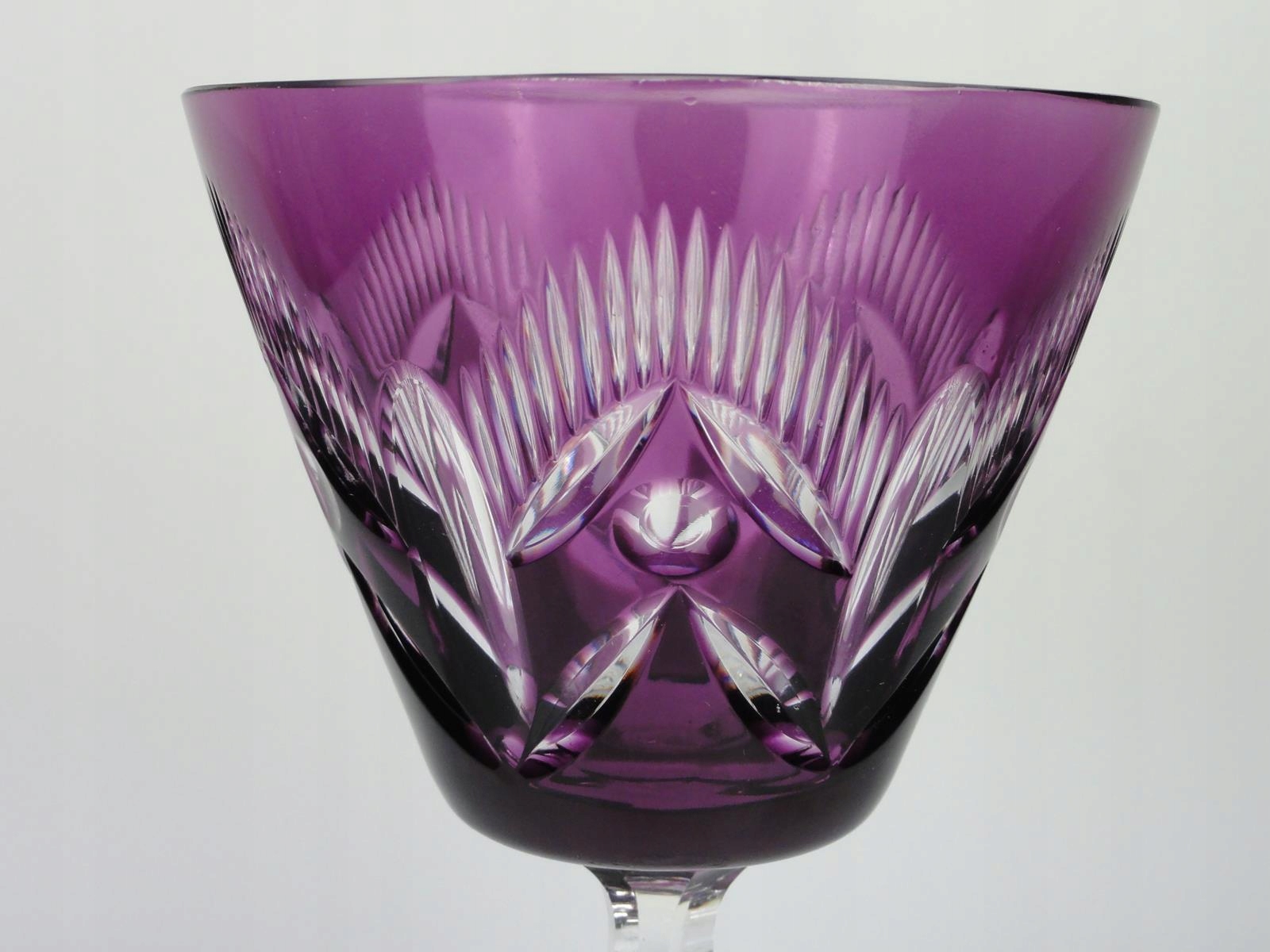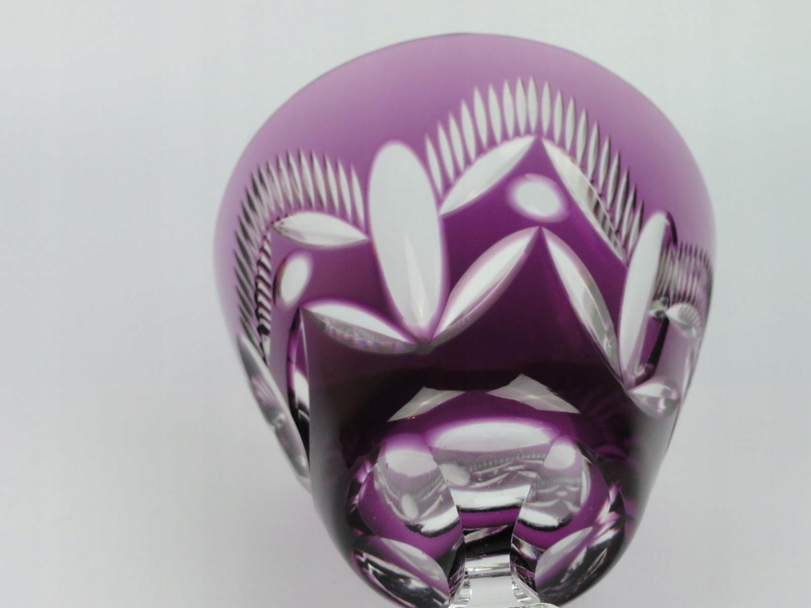 *келих зі свинцевого скла, видувний у формі, шліфована та полірована, фіолетове покриття, стовпчастий вал, шліфована основа,