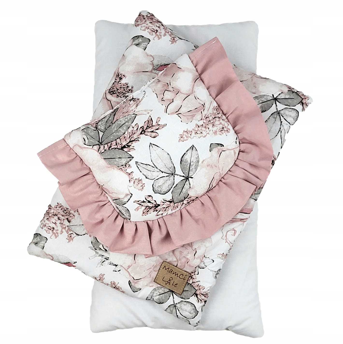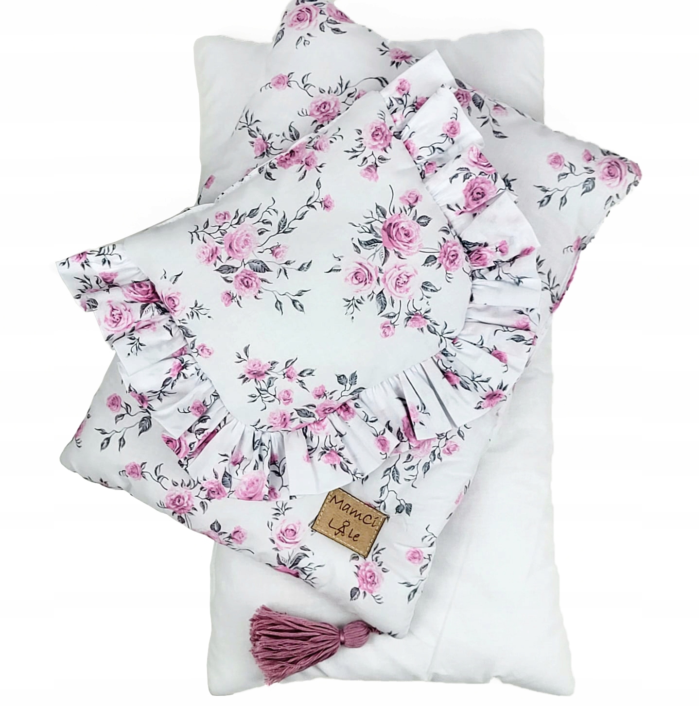 Вишита красивою, ручної роботи виготовленоз постільної білизни з бавовни/мусліну. Ковдра оброблена китицею, а подушка оброблена ніжним воланом. У комплект також входить матрац. Ідеально підходить як іграшка для дівчаток від 2 років.