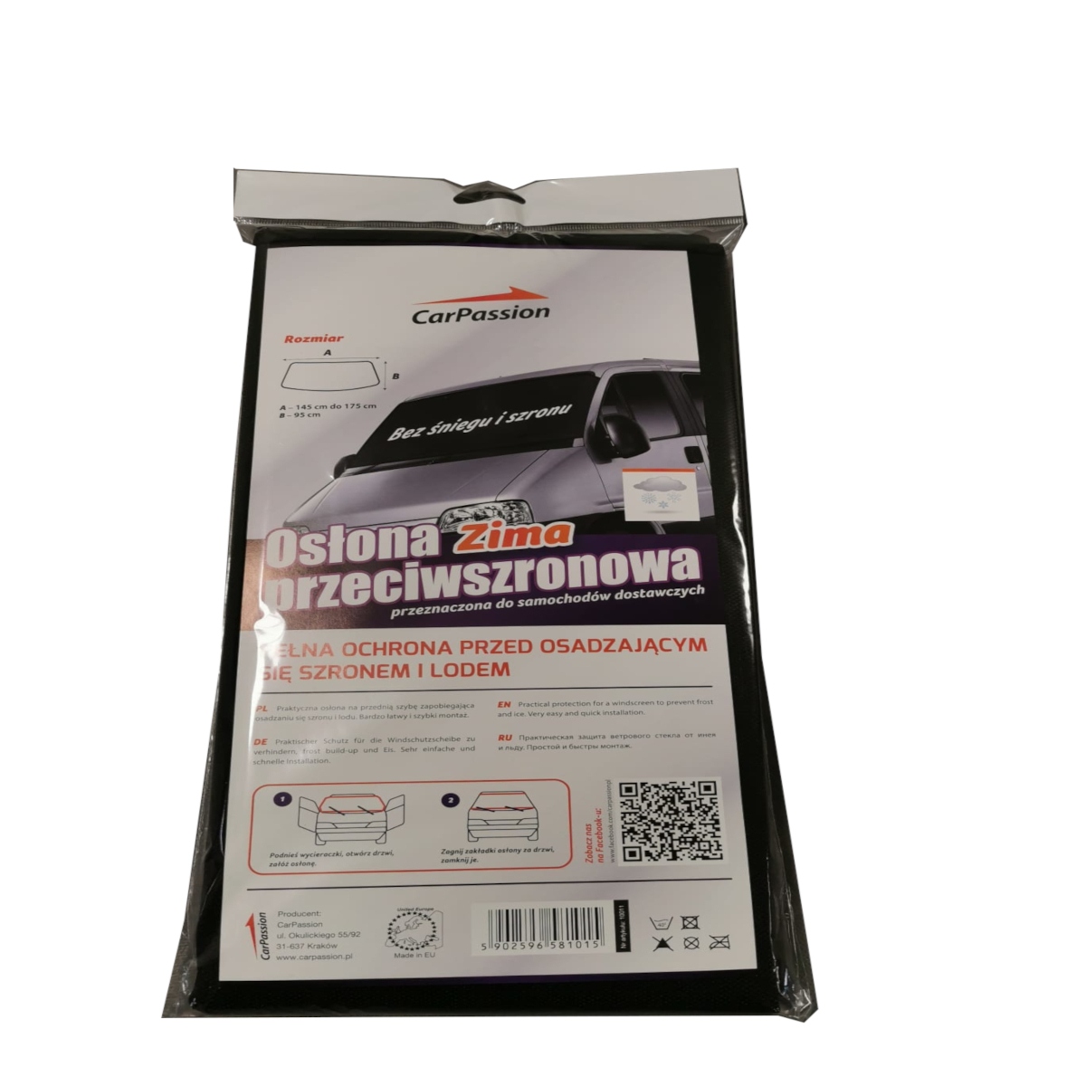 - Підходить для автомобілів розміром з лобове скло (висота 95см / ширина 145-175см)