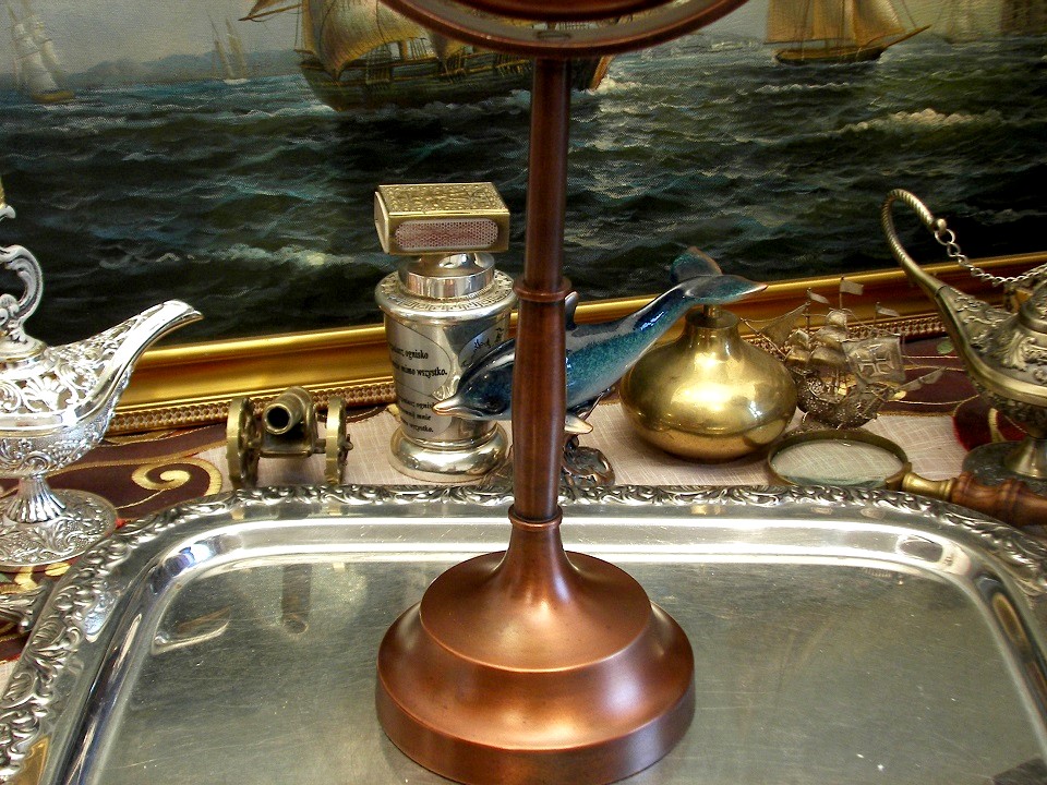 Запрошую купити надзвичайно цікаву, велику лупу на оправі. Предмет надзвичайно інтригуючий, привертає увагу своєю формою та мідним кольором, і в той же час велике скло може стати в нагоді на практиці.Це предмет декоративний і репрезентативний, але запевняю вас, він чудово збільшує те, що я намагався показати. на фотографіях