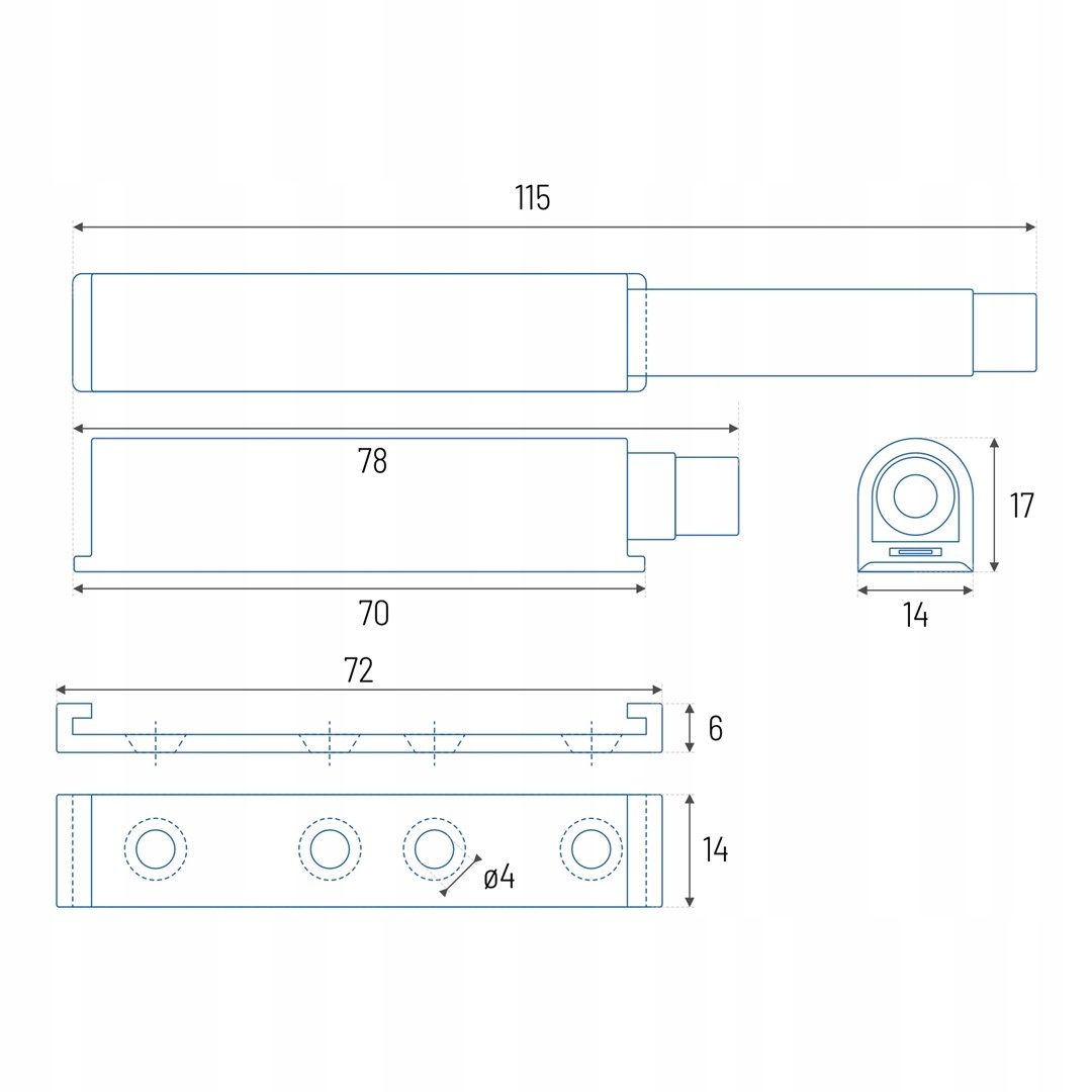 Бампер PUSH TO OPEN з магнітним наконечником призначений для установки в шафи без ручок, які містять магнітну пластину, яка відкривається натисканням на передню частину p> Велика засувка для меблів Push-To-Open з магнітом