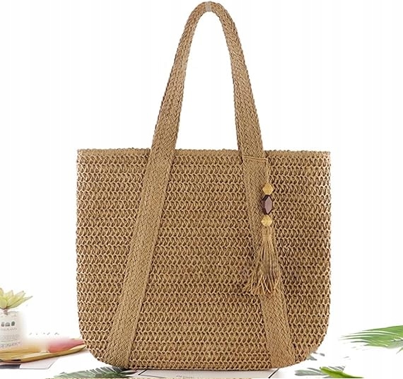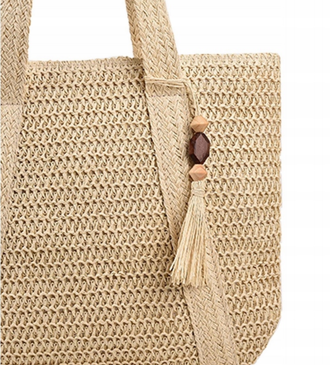 Велика міцна солом'яна сумка літня плетена пляжна кошик міська бахрома