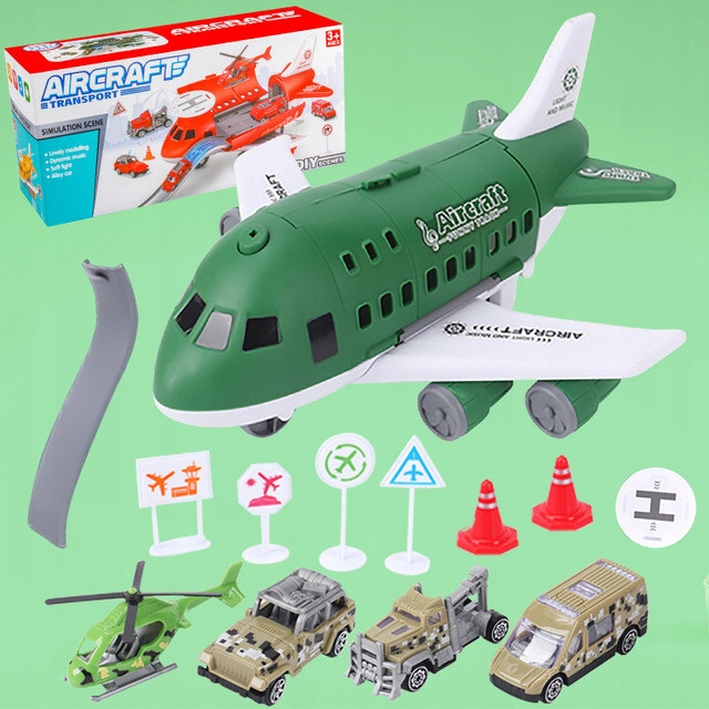 Літак-транспорт сподобається кожному маленькому любителю будівельних робіт. Літак розкладається шляхом підняття багажного відділення. Закрилки вантажного відсіку літака відкидаються вбік, розширюючи палубу, на яку можуть заходити транспортні засоби. Автомобілі можуть входити та виходити з передньої частини літака на розкладній рампі під носом. У розкладеному літаку також є машини, вертоліт і дорожні знаки.