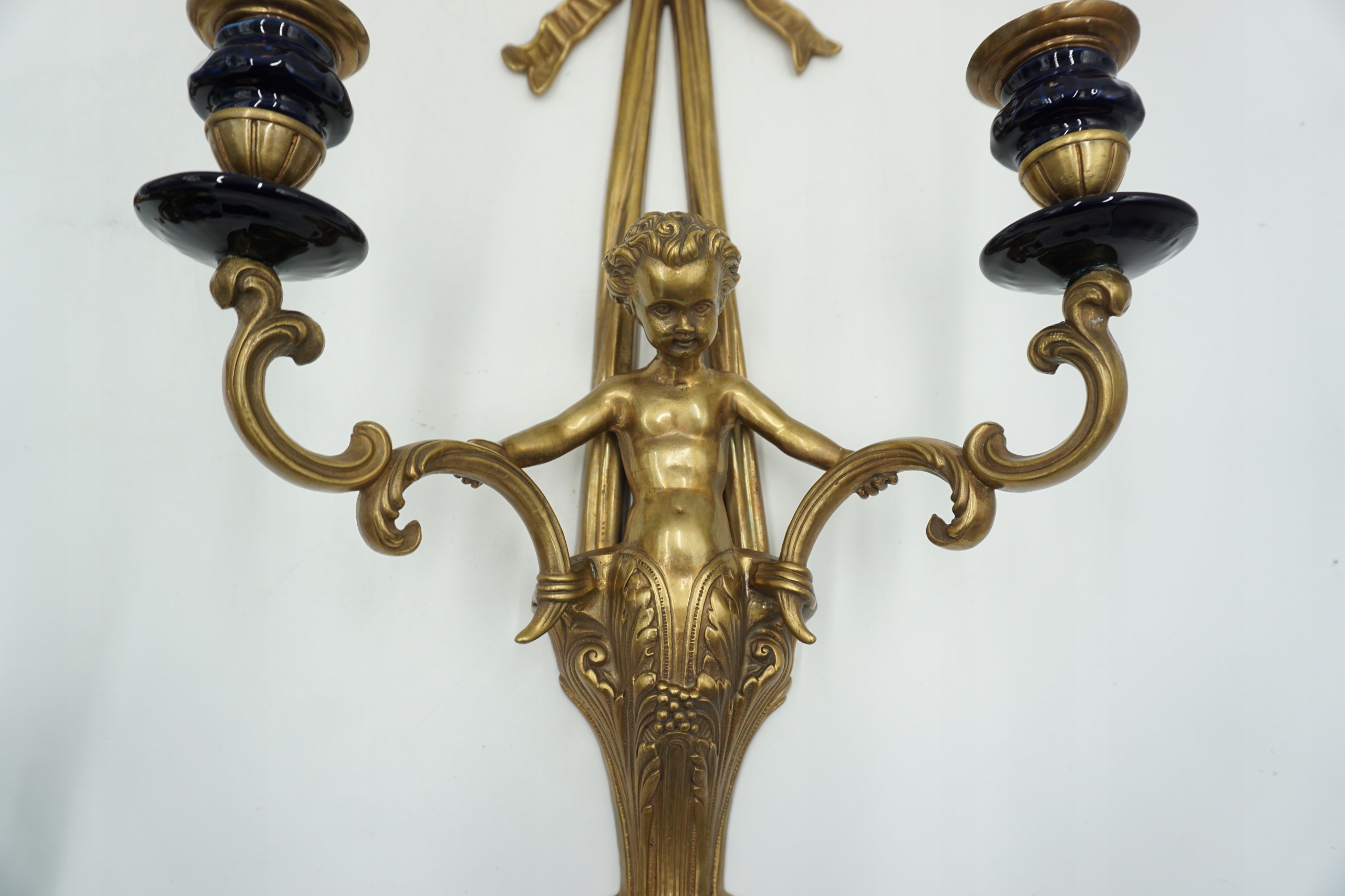 Велика пара настінних світильників порцелянової порцелянової порцеляни з бронзою