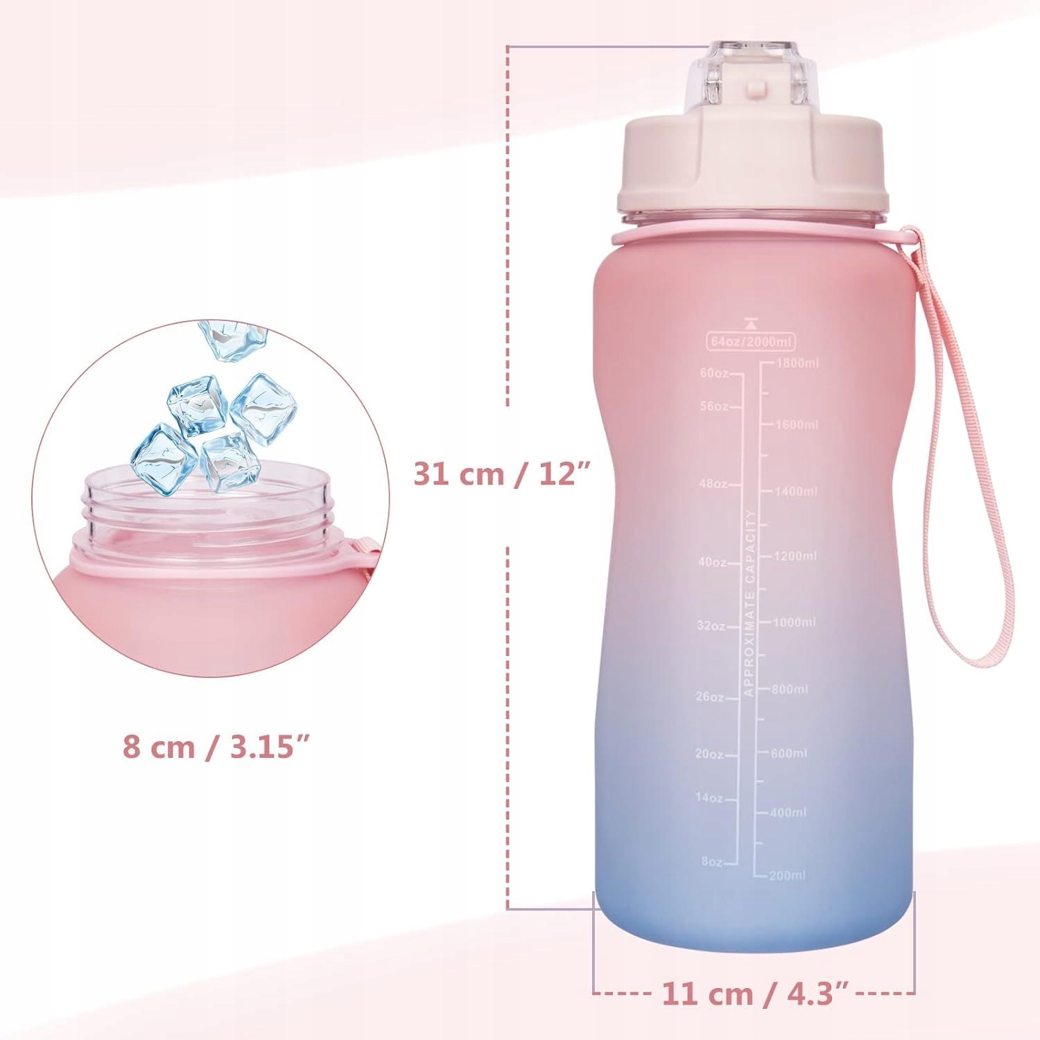 Спортивна пляшка для води SHBRIFA 2 л, 2 л з соломинкою, мотиваційна пляшка для води 2 л без бісфенолу А (рожева/блакитна), в комплекті чохол і ремінь для транспортування
