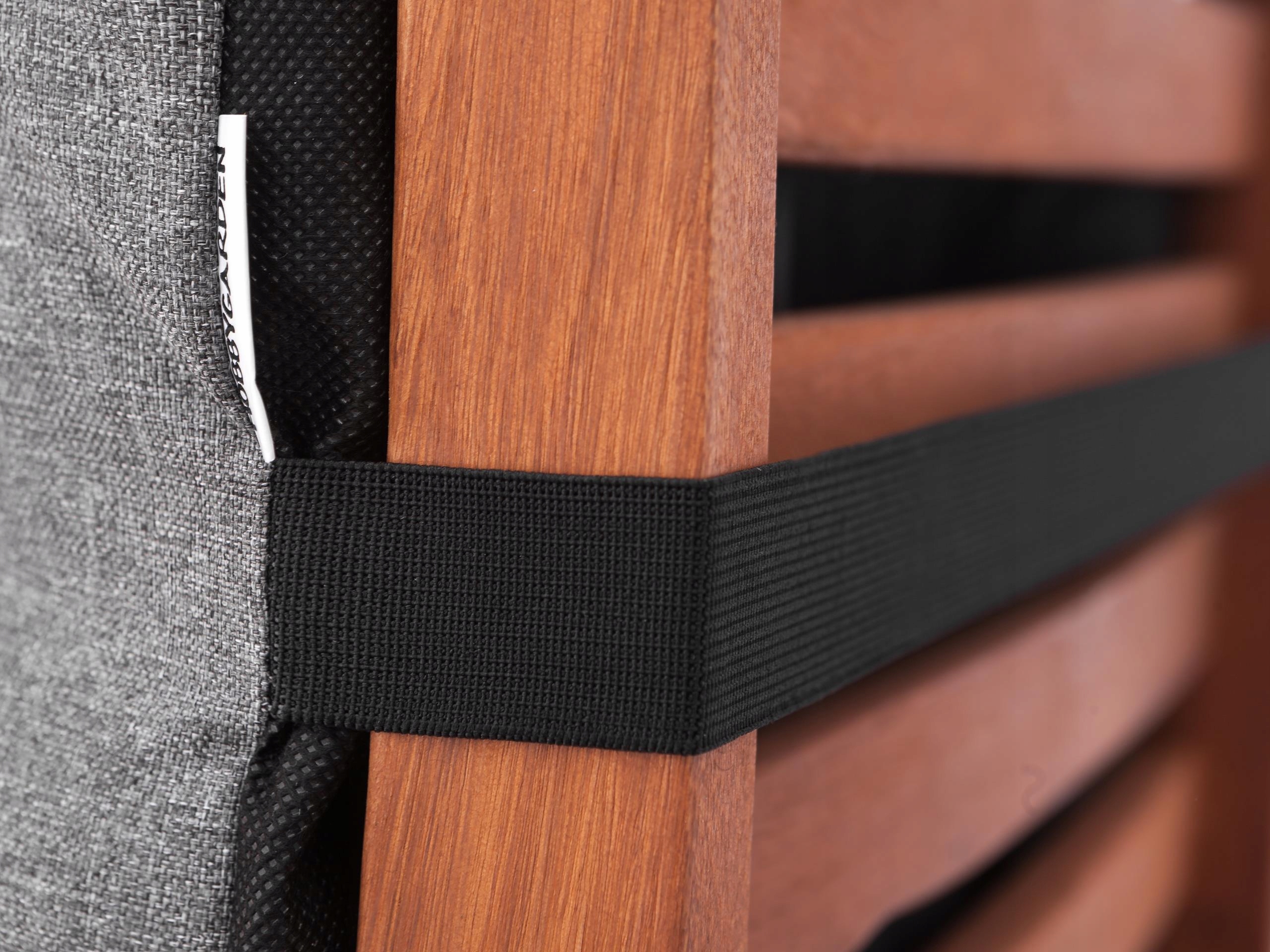 - Простота очищення. Волога тканина достатньо, щоб видалити більшість плям. Для більш складного бруду подушку можна промивати вручну при температурі 30 'c. Просто зав'яжіть ремінці до корпусу для сонця і налийте гуму на спину