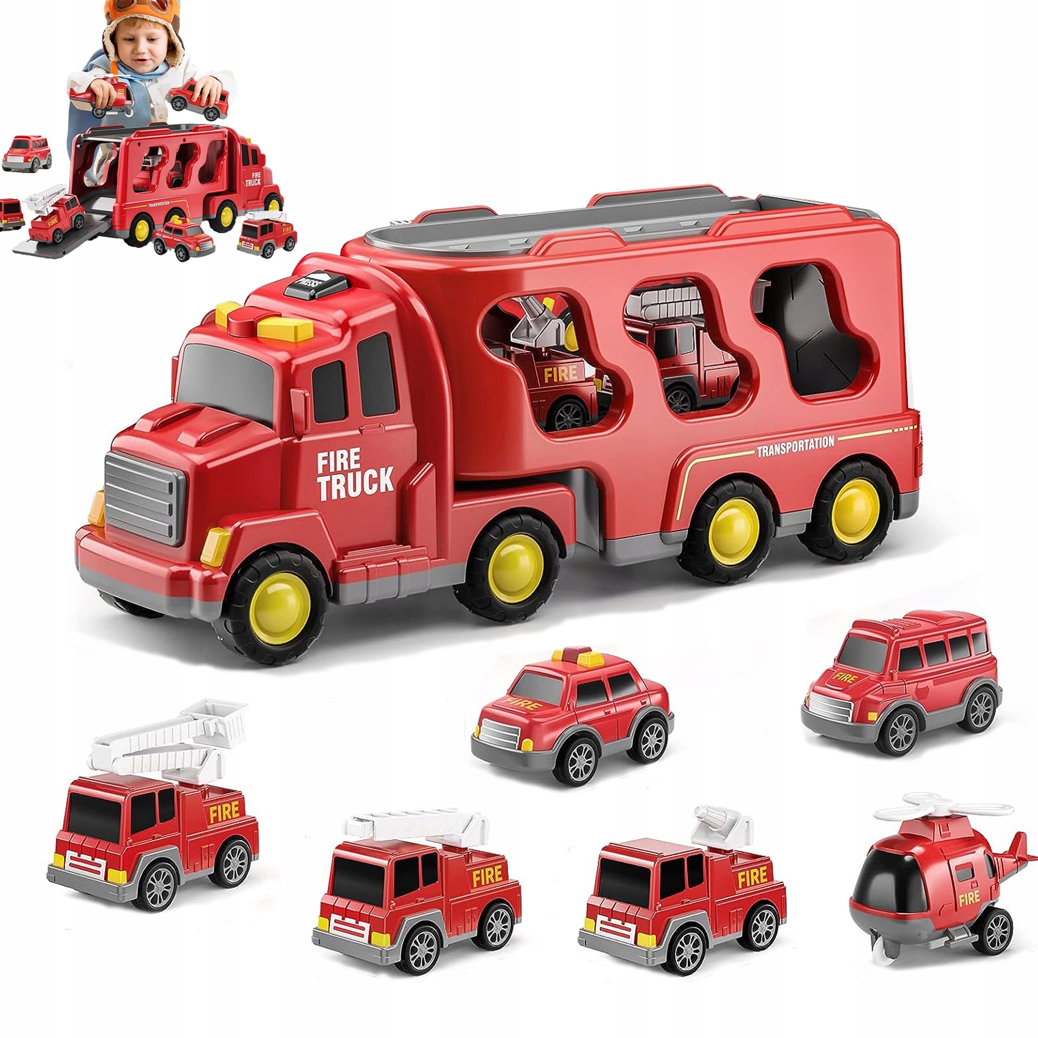 🚒Створено для маленьких любителів пожежогасіння, включає більший транспортний засіб і 6 маленьких автомобілів (пожежна машина, автодрабина, гелікоптер, спринклерна машина, автомобіль і позашляховик ).