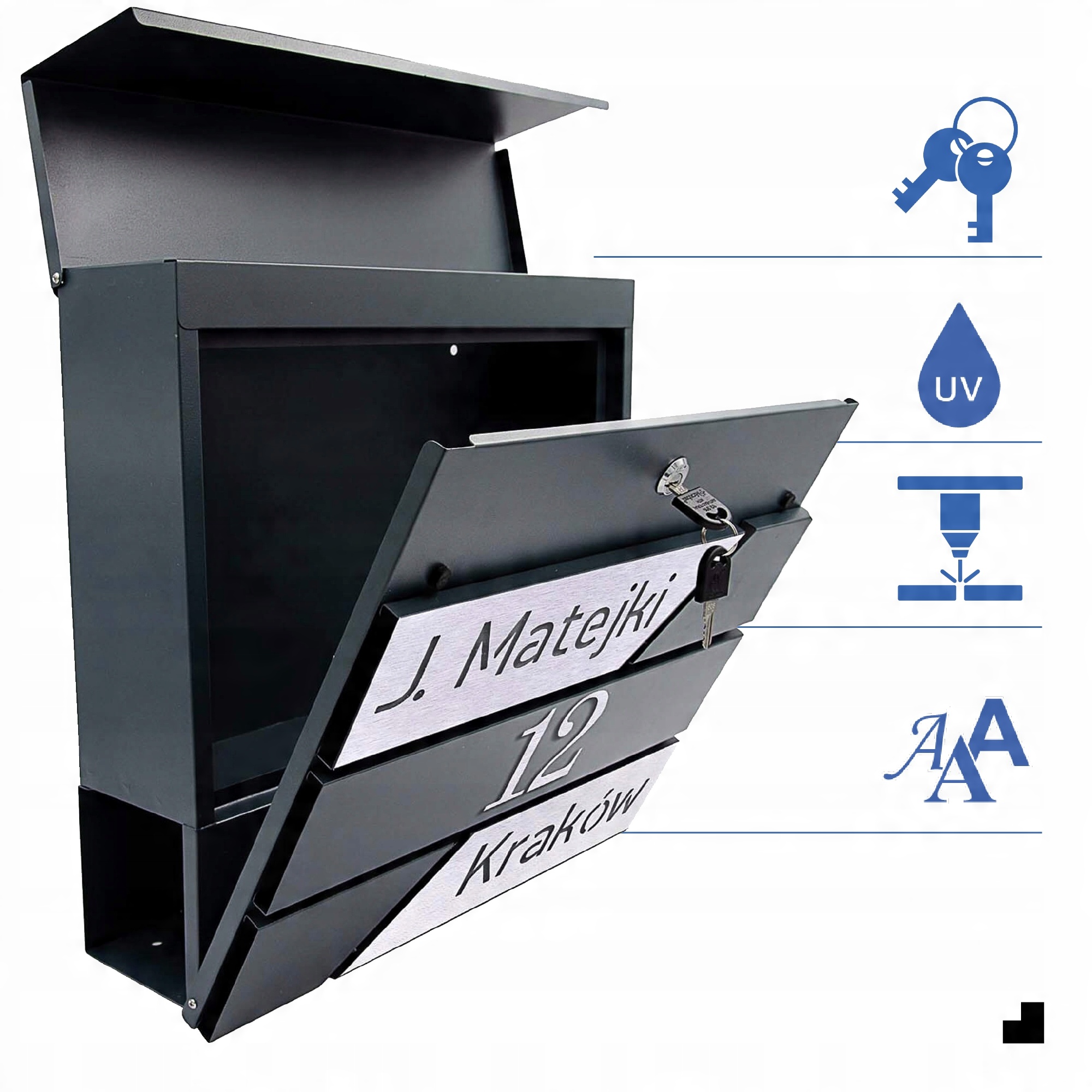 ВЕЛИКА ПОШТОВА Скринька З АДРЕСОЮ ТА НОМЕРОМ БУДИНКУ | СЕРБАН АНТРАЦИТ RAL 7016