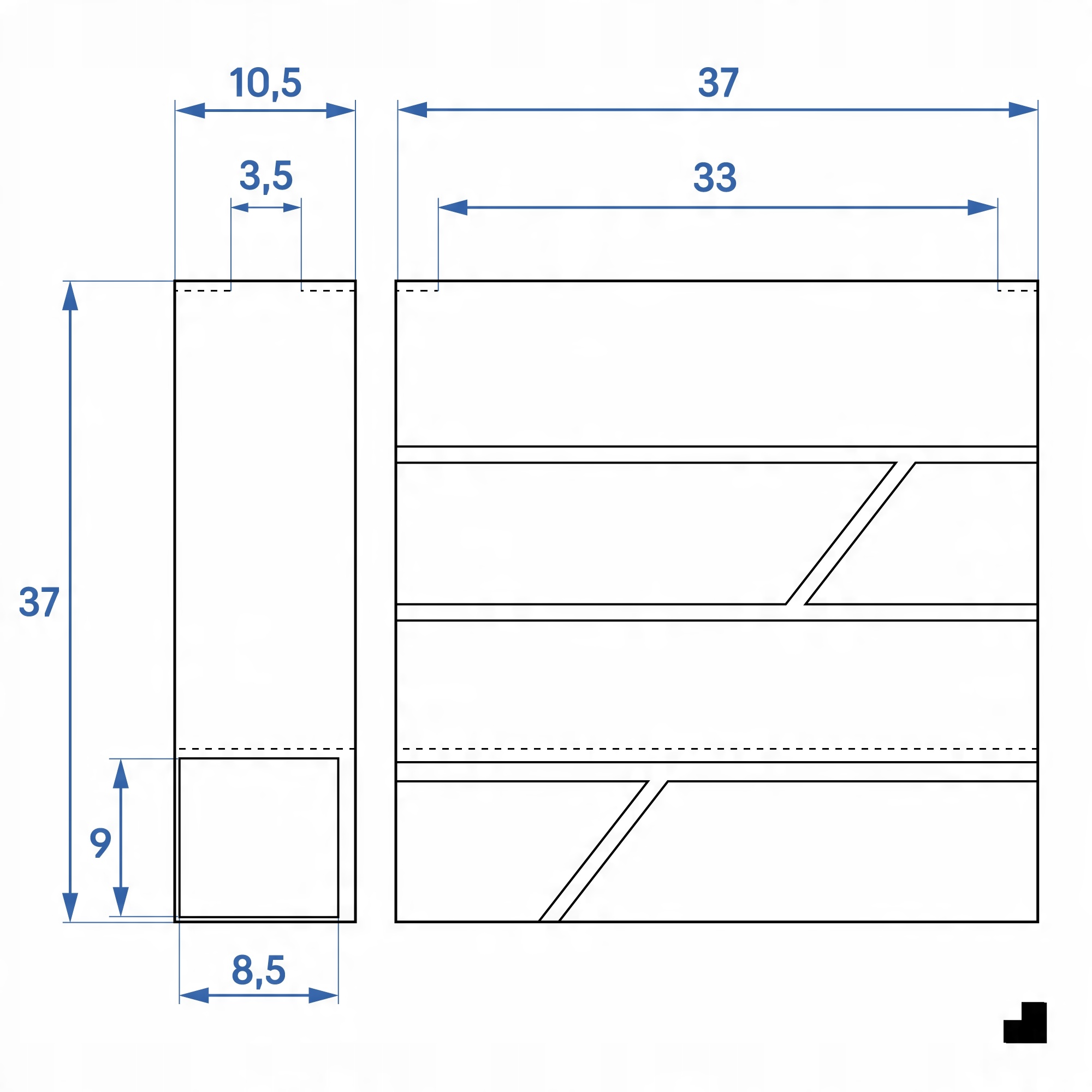 - Депозитний ящик: 33,5 x 3,5 см
