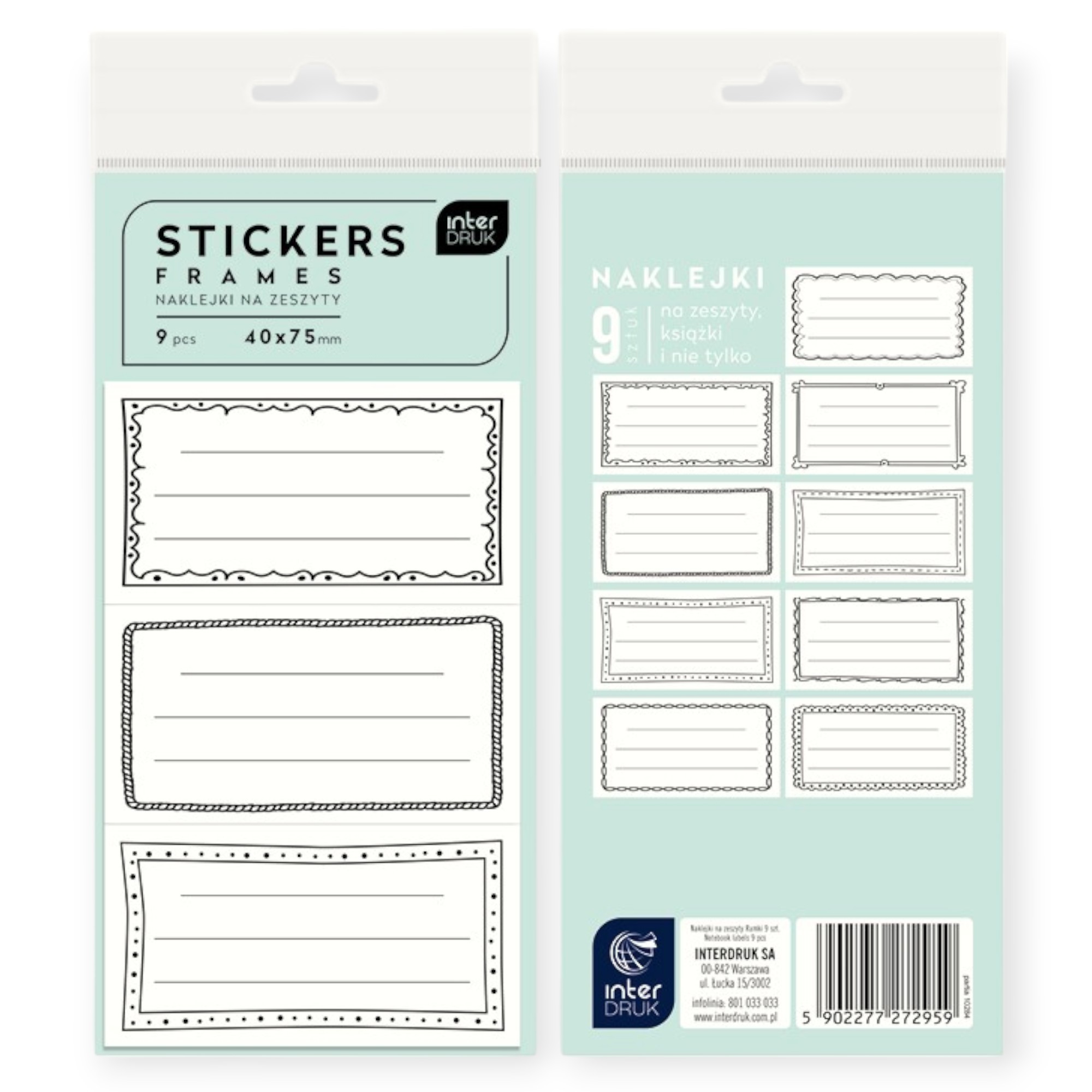 Наклейки для зошитів 9 шт. Рамки - практичні самоклеючі наклейки, призначені для маркування зошитів і підручників. Кожна з дев'яти стікерів у наборі має розміри75 х 40 мм і містить три рядки для введення імені, прізвища, предмета чи класу.
