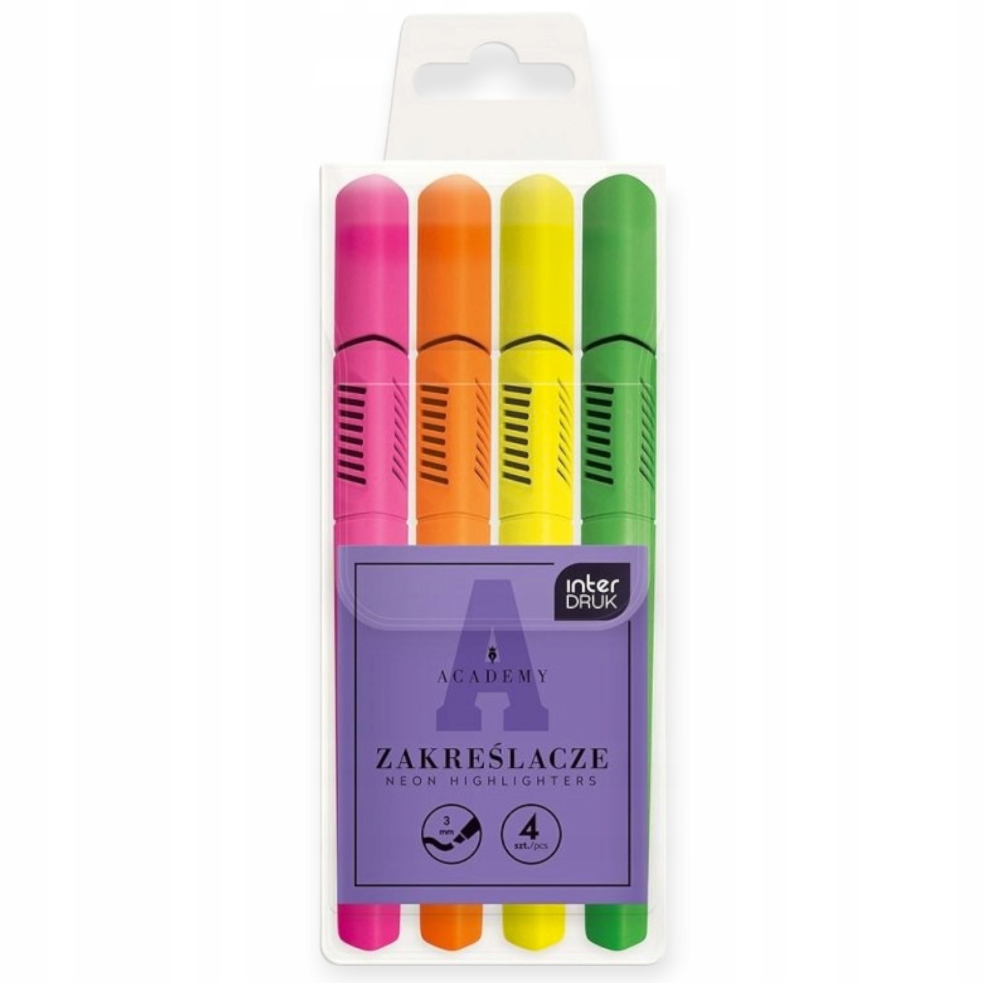 Набір неонових хайлайтерів Interdruk Academy - ідеальний інструмент для студентів і людей, які працюють розумово. Завдяки інтенсивним неоновим кольорам і практичному корпусу виділення важливої інформації стає швидким, точним і приємним.