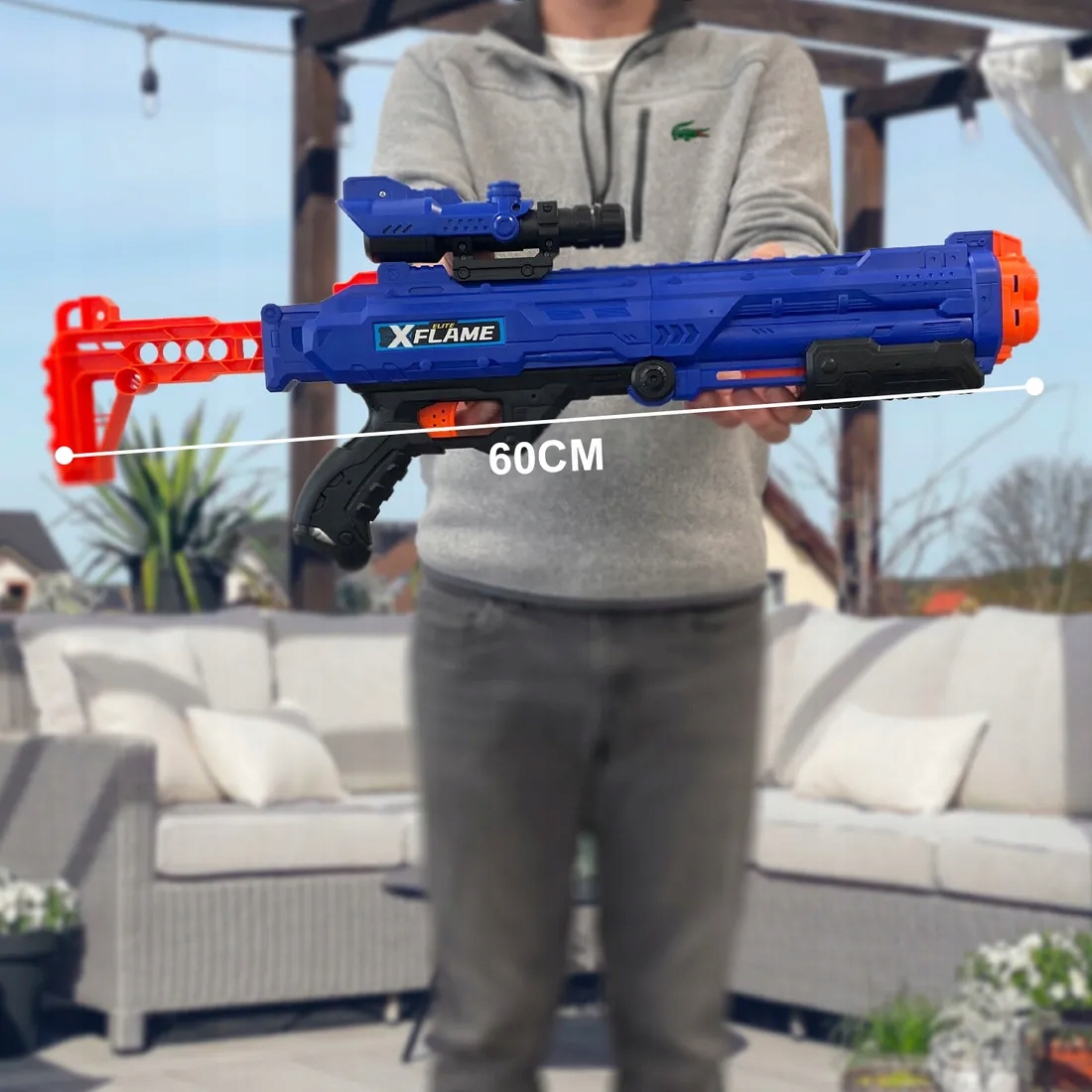 готовий до емоційних розваг? Ми представляємо рушницю, яку можна грати з 2 ультра світлом і м'якими пінопластами. Коли у вас не вистачає картриджів, зверніть боєприпаси до журналу, щоб швидко продовжувати гру, це також сумісний з більшістю іграшкових пістолетів . Така забава запуск допомагає розвивати координацію дітей під час захоплюючого геймплея.