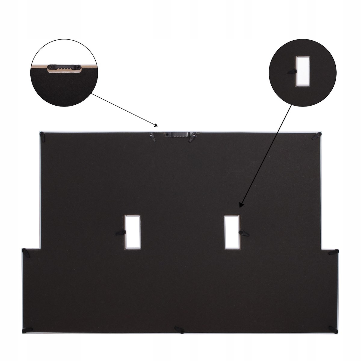 У рамки можна розміщувати фотографії максимального розміру 10x15 см, що дуже популярно. Мультирама має 3 кадри, розташовані горизонтально, і 3 кадри вертикально. Завдяки цьому ви можете використовувати на ньому улюблені фотографії. Фотографії розміщено за безпечним плексигласом, яке утримує їх у правильному положенні.
