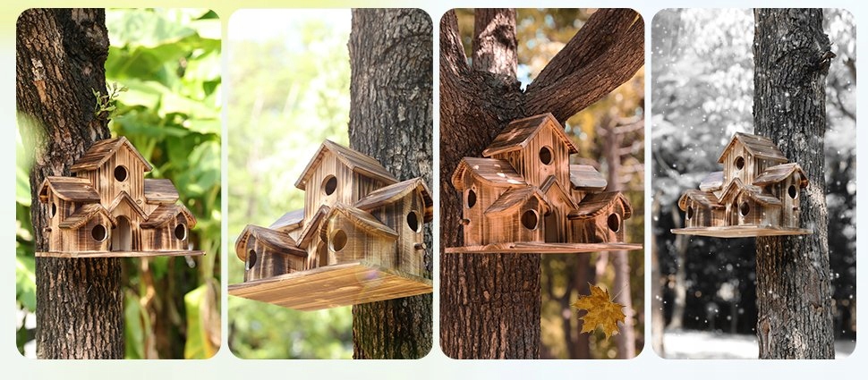 Великий будинок для розведення пташиних будинків, що підвішується, дерев’яне село, садове село