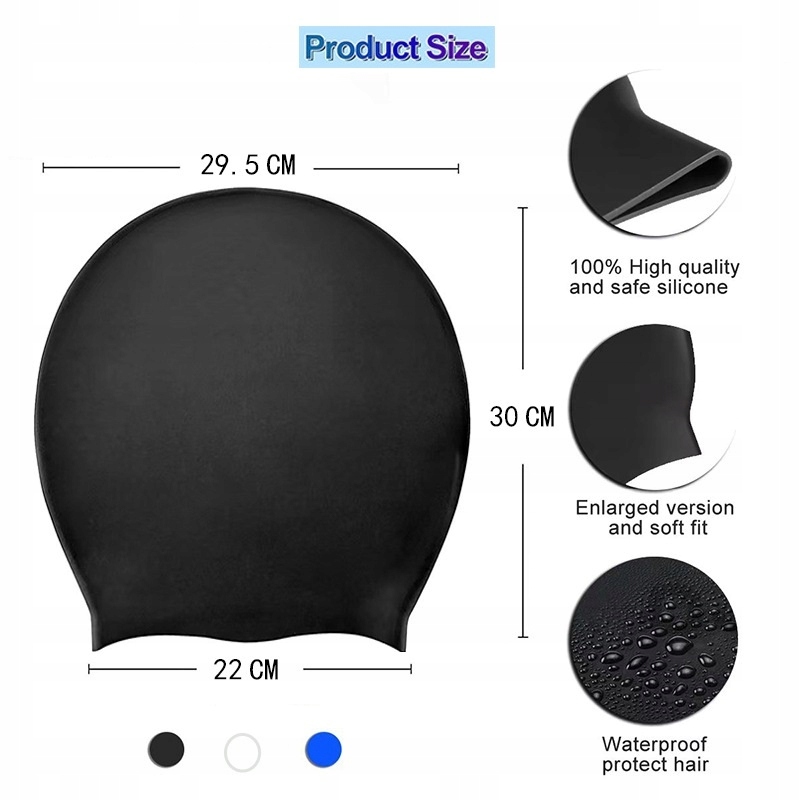 Ця шапочка для плавання більша за звичайну шапочку для плавання, і в ній достатньо місця, щоб помістити будь-яку об’ємну зачіску чи кучеряве волосся.