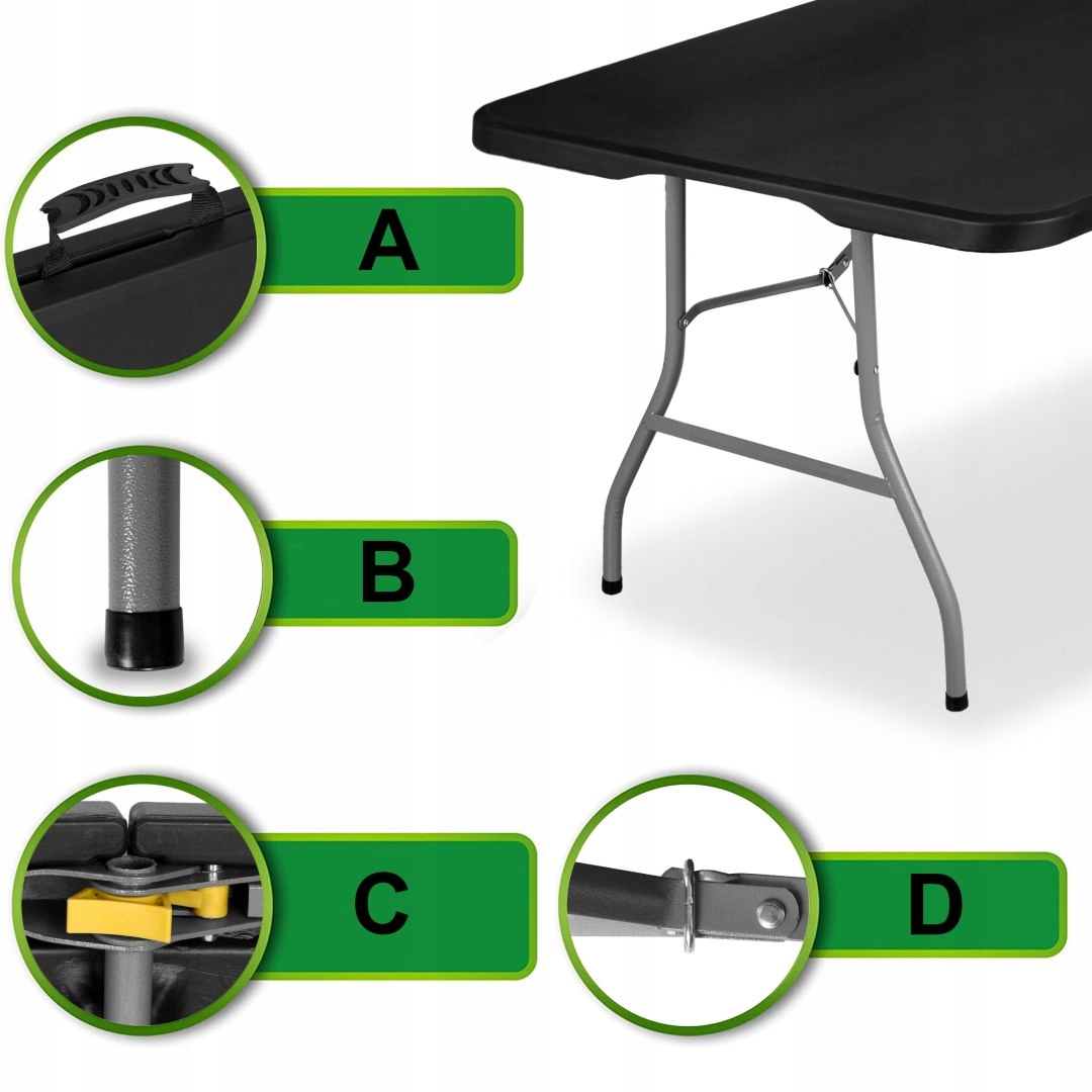 Велика складка -аут -банкетний стіл, складений у чорну валізу 240 см