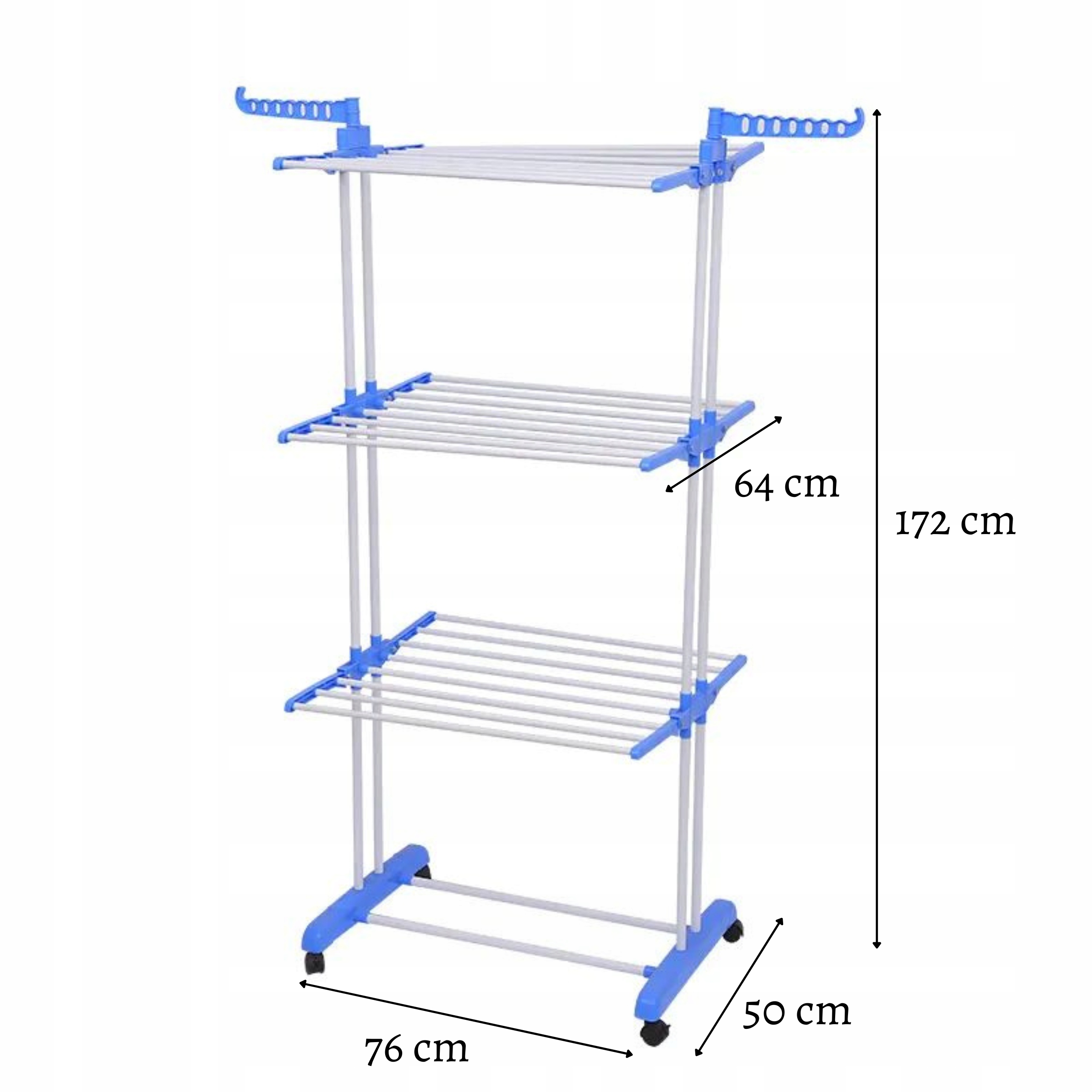 Сушильна машина для білизни — ідеальне рішення для людей, які шукають простору, ефективну та просту у використанні альтернативу класичним сушаркам. На відміну від традиційних моделей, має 3 рівні, що дозволяє сушити білизну на трьох різних висотах одночасно, що істотно економить простір. Всього він має цілих 6 кронштейнів для підвішування одягу, в тому числі два спеціальних кронштейна для вішалок з пазами, які запобігають переміщенню одягу, що дозволяє отримати відповідну відстань між ними під час сушіння.