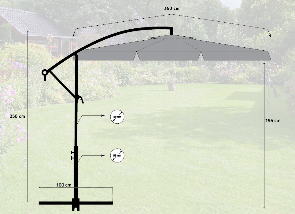 У кожну пору дня сонце знаходиться на іншій висоті над горизонтом, тому ми дозволяємо регулювати висоту, а отже, і нахил ковпака парасольки.